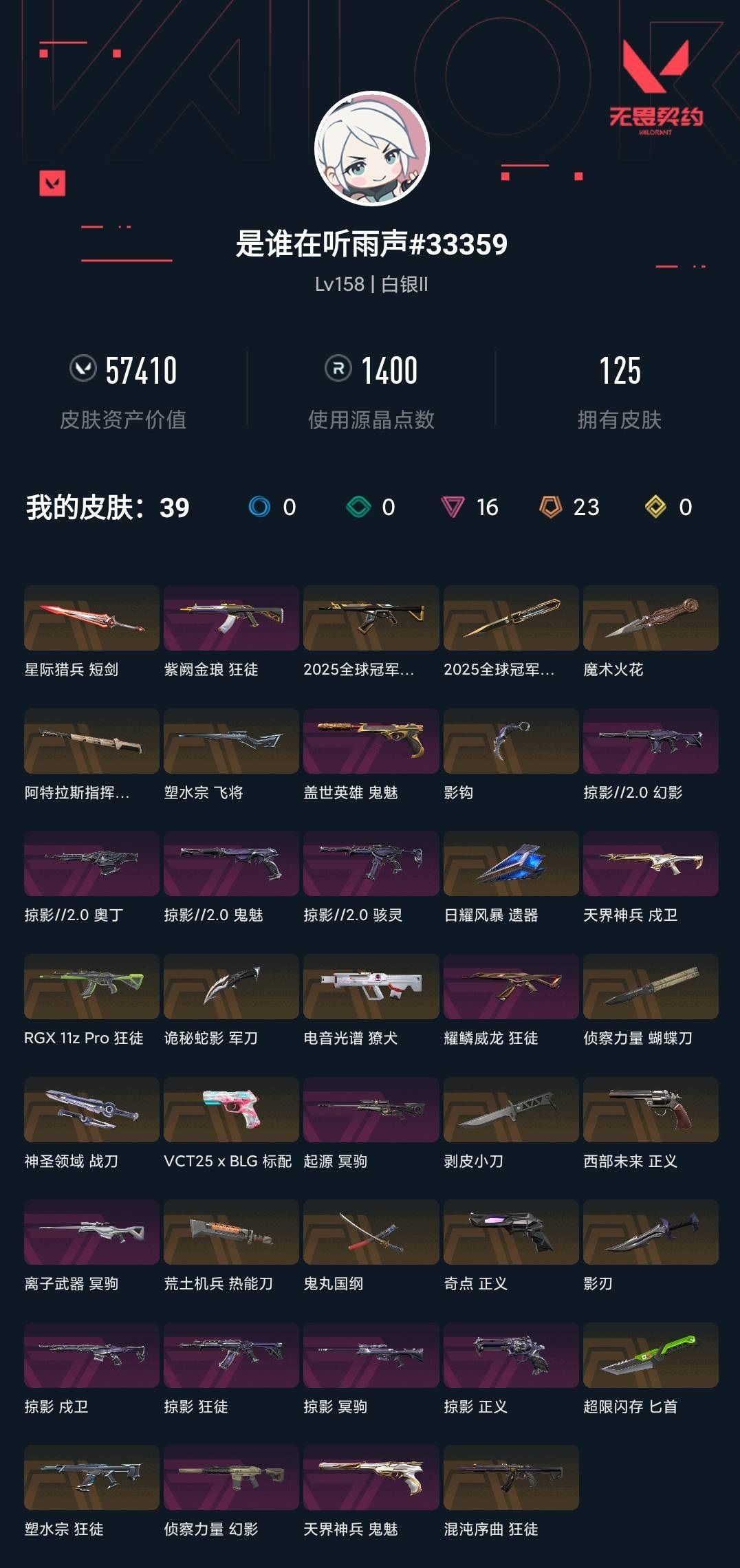 • 游戏区服:无畏契约-wegame / wegame / wegame