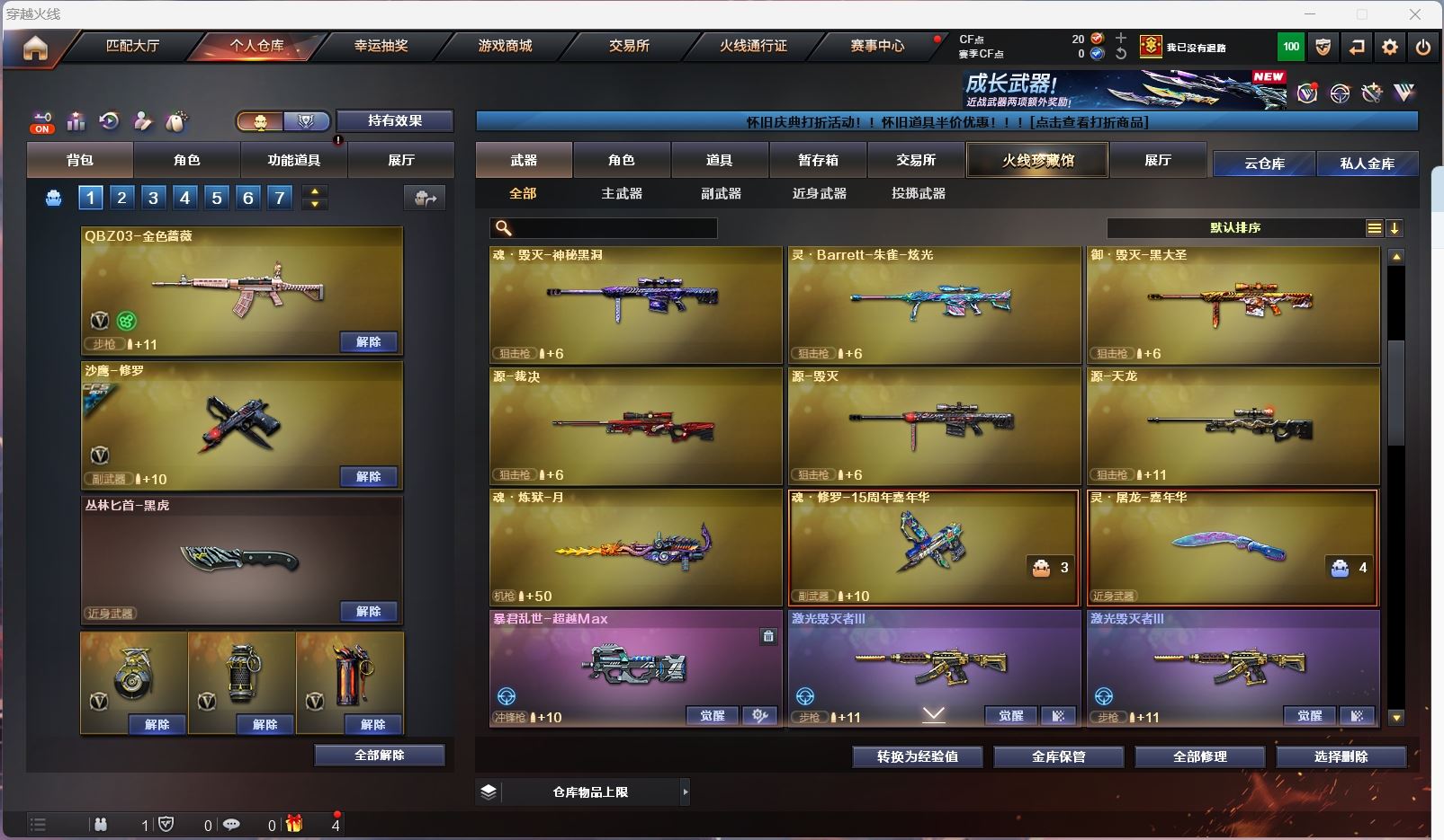 【m200幻神】【m200竞技荣光+usp雷暴+云悠悠】【6盘龙 炼狱 6烈龙 斯太尔蝴蝶 】【传说暗裔】【scar白虎】【qbz金色蔷薇】【火麒麟】【雷神+卡+宠儿+荣耀之魄】【黑骑士】【毁灭+ 卡+荣耀之怒】【极光】【裁决 】【武器:雷暴 王者之心 王者之魄 王者之势 王者之戮 海王 】【7手枪:修罗*2 天神 雷暴 堕天神 竞技荣光 雷霆王者 】【10刀具:屠龙*3 龙啸 擎天 斩神刀雷暴 堕天神 竞技荣光 】【9雷套:雷暴雷*5 堕天神雷*4】【小人枪:】【音效卡:毁灭音效卡 雷神音效卡 】【四防角色:王者春 王者魅影 职业经理 葵赛博朋克 】;USP-雷暴,电竞教官-云悠悠,RPK-盘龙,QBZ03-金色蔷薇,M200-幻神,Scar Light-白虎,传说暗裔,