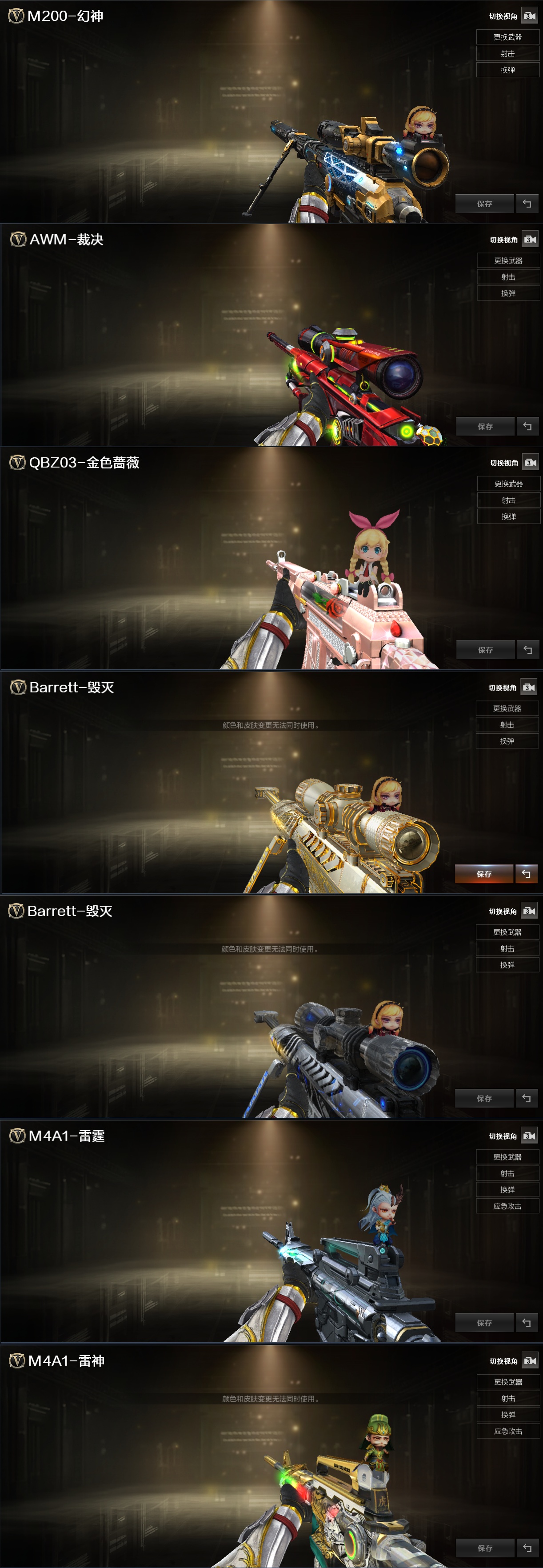 【七烈龙生化号】【m200幻神】【裁决】【qbz金色蔷薇】【雷神三件套】【毁灭三件套】