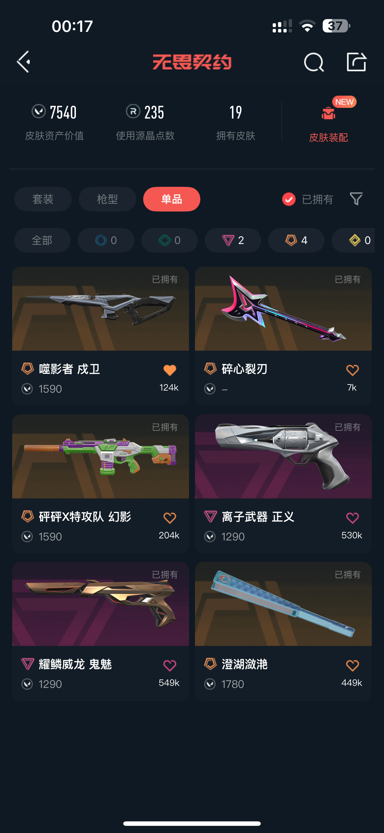• 武器皮肤数量: 19