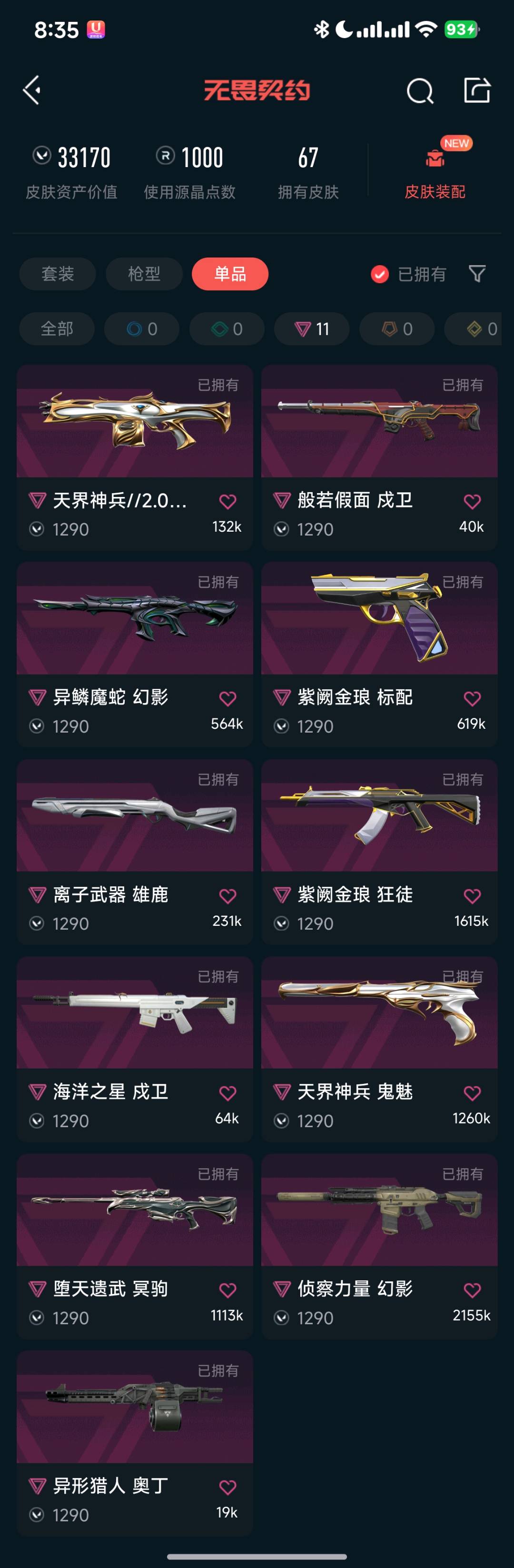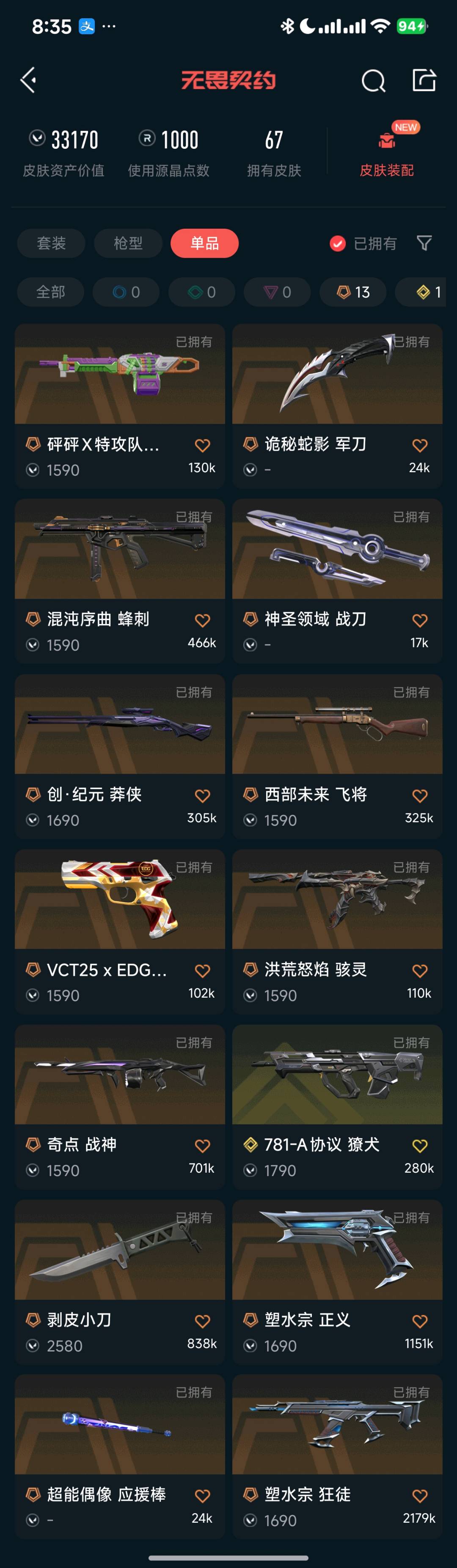 • 武器皮肤数量: 67