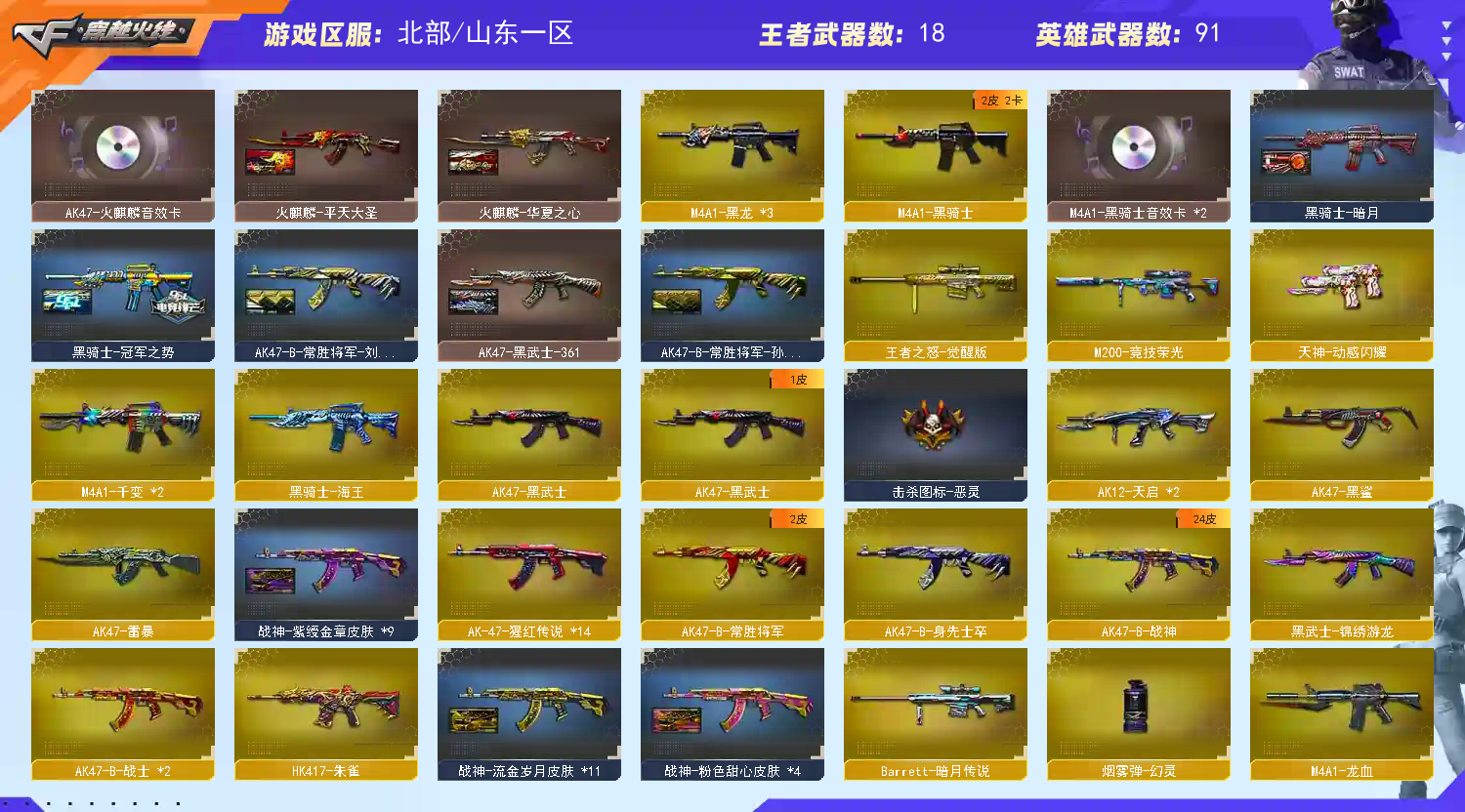 【m200竞技荣光 +usp雷暴+四防云悠悠】【6盘龙 炼狱*3 6烈龙 斯太尔蝴蝶 】【qbz金色蔷薇】【朱雀】【火麒麟+卡】【黑龙】【雷神+卡】【黑骑士+卡+冠军之势 】【毁灭+卡+ag15冠军】【极光】【裁决 】【武器:雷暴 王者之势 王者之戮 王者之幻 海王 】【8手枪:修罗*4 天神 雷暴 堕天神 王者之灵】【9刀具:龙啸 擎天 斩神刀雷暴 竞技荣光 王者之锋 王者之啸 王者之击 】【小人枪:雷神精英刀锋 】【音效卡:毁灭音效卡 雷神音效卡 火麒麟音效卡 黑骑士音效卡 】【四防角色:云悠悠 王者葵貂蝉 王者瞳闭月羞花 王者葵惊若翩鸿 王者玲珑小乔 葵赛博朋克 】;USP-雷暴,电竞教官-云悠悠,RPK-盘龙,QBZ03-金色蔷薇,