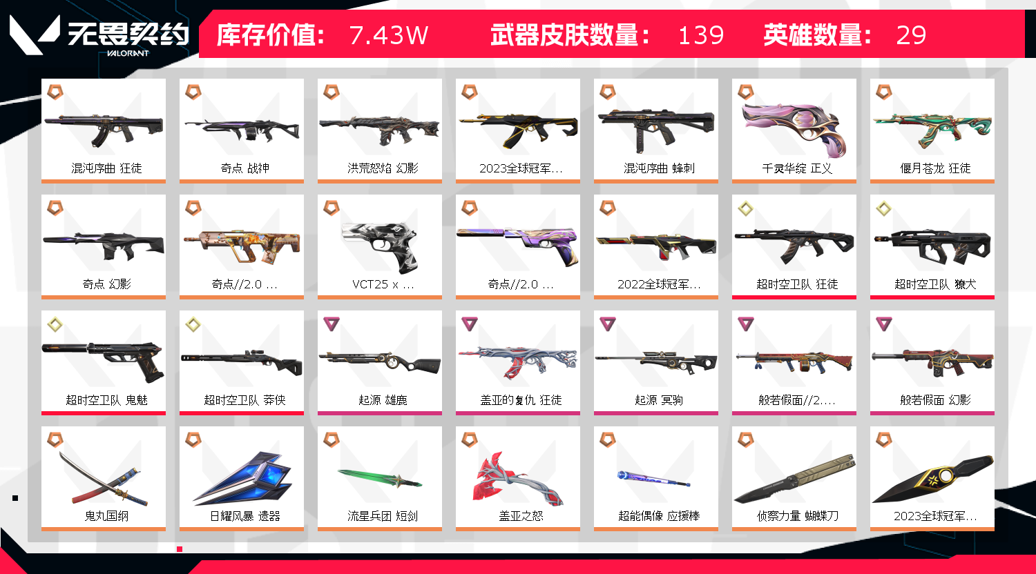 • 皮肤资产价值: 74300