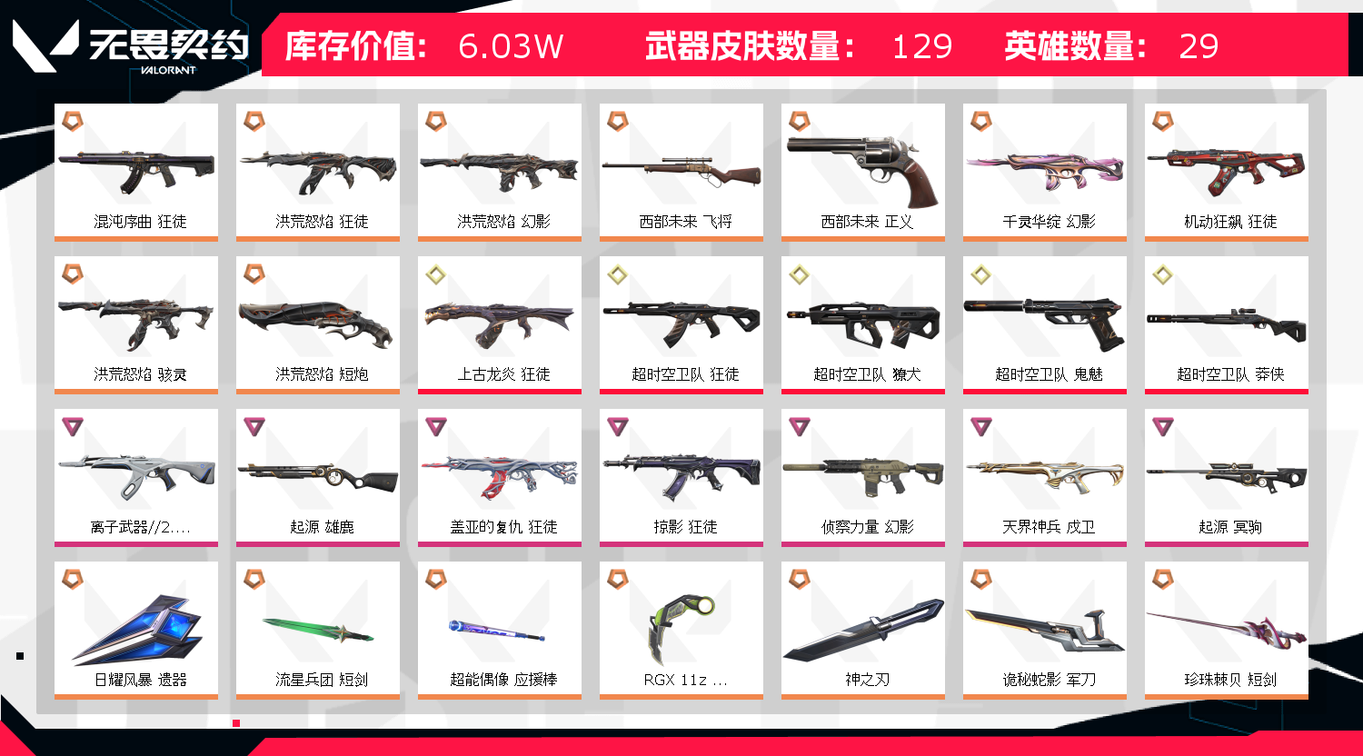 • 武器皮肤数量: 129
