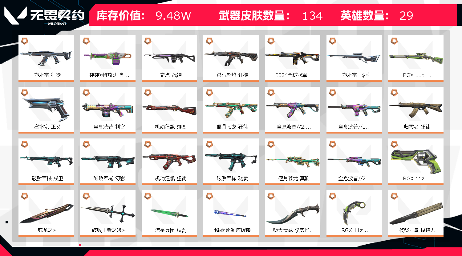 • 皮肤资产价值: 94850