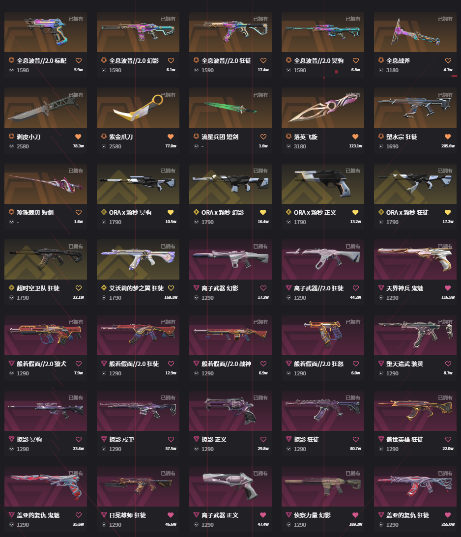 • 武器皮肤数量: 190