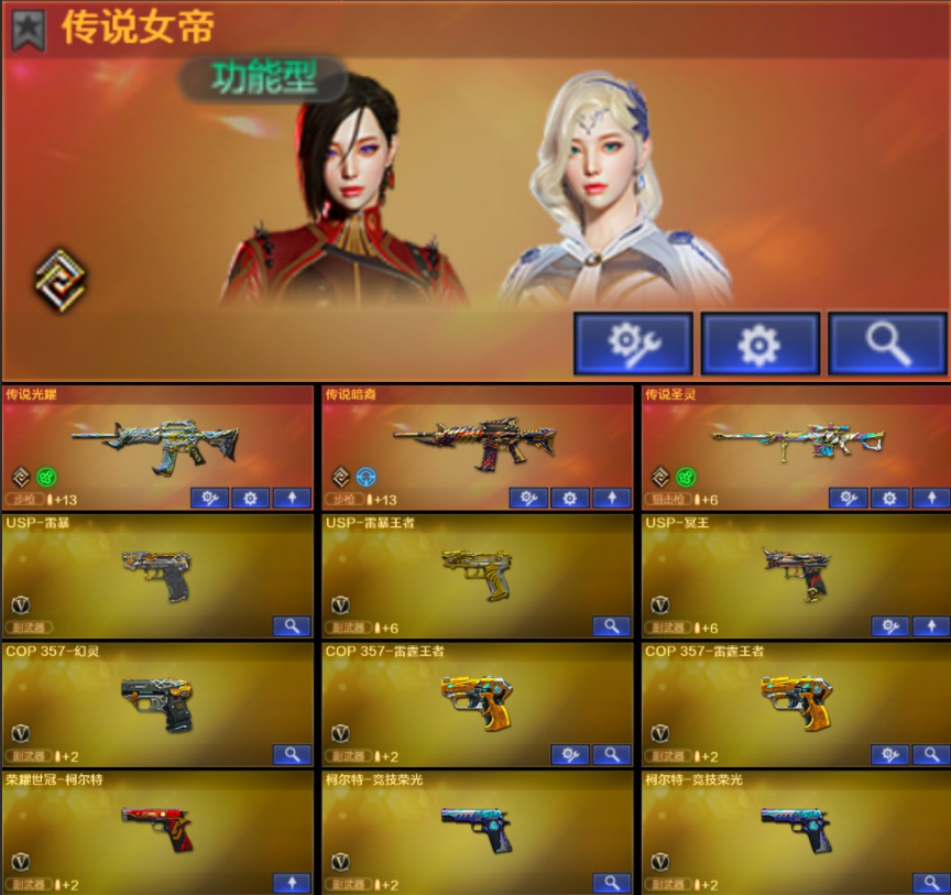 传说女帝/满配王暴9副手/幻神三件套3皮/星神/裁决三件套3皮/天戎/幻影/白虎/6盘6烈蝴蝶双玄武