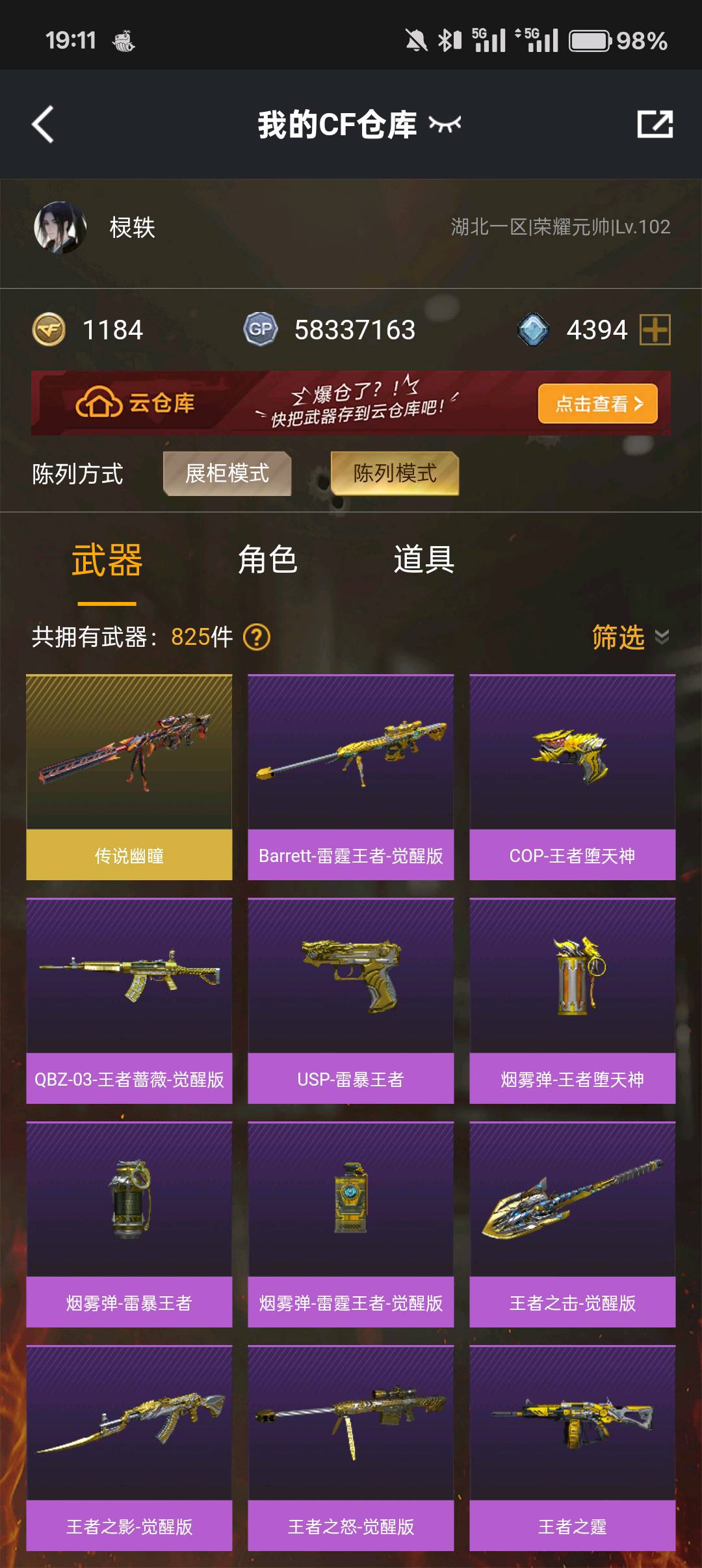 • 游戏区服:穿越火线 / 电信区 / 湖北一区