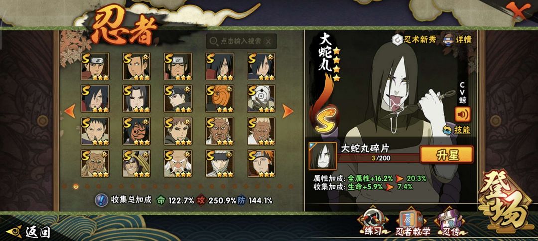 s差的如图,战力2000w,十尾带土,止水,卡卡西,大蛇丸,蛞蝓,熊猫,大象,二尾,守鹤,大象