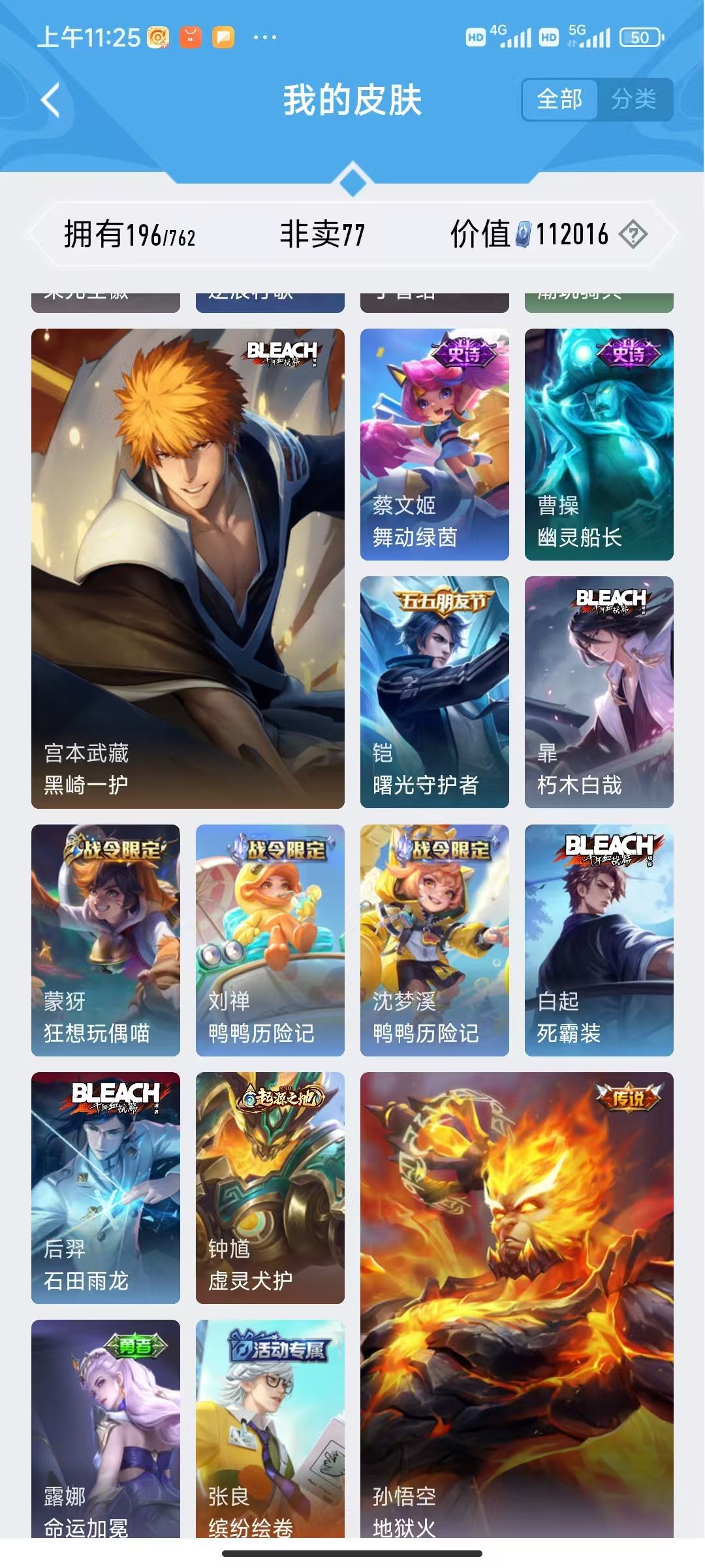黑崎一护/朽木白哉/愿照九州拓/地狱火/山海玄木吟/飞衡/线条小狗/灵蛊蚀心/2珍品4传说