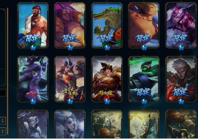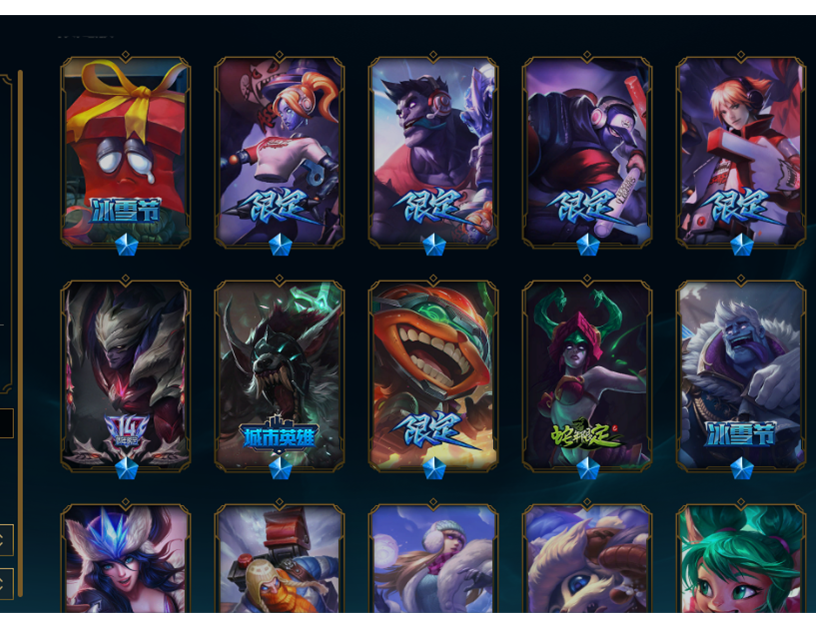 868原皮 470炫彩 19神话 虎年年套 律动队长提莫 神王盖伦诺手 奥斯曼大帝 新皮多多 源计划 万圣节 情人节 泳池 电玩 冰雪节 应有尽有