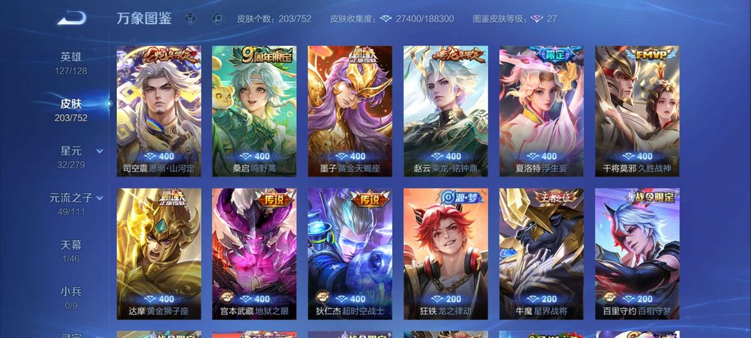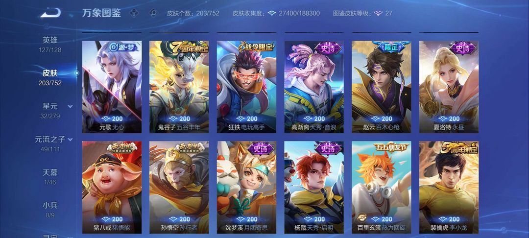 v10、524皮5水4无双、遇见神鼓、齐天大圣、白虎志、韩信荣耀典藏、72传说、愿照·九州拓、时之魔女、瑶无双、青丘、九尾、神器明辉仪