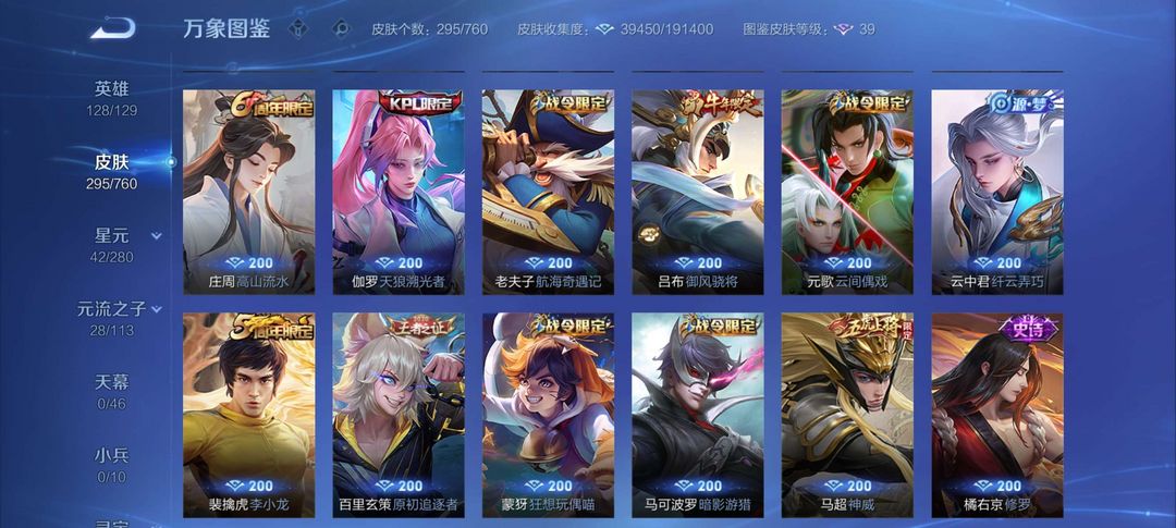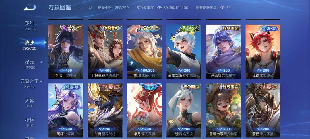 【非云直上】537满皮满典藏12星元◎鲁班新皮◎虞姬星元◎天使星元◎白金战神◎妲己绝版星元