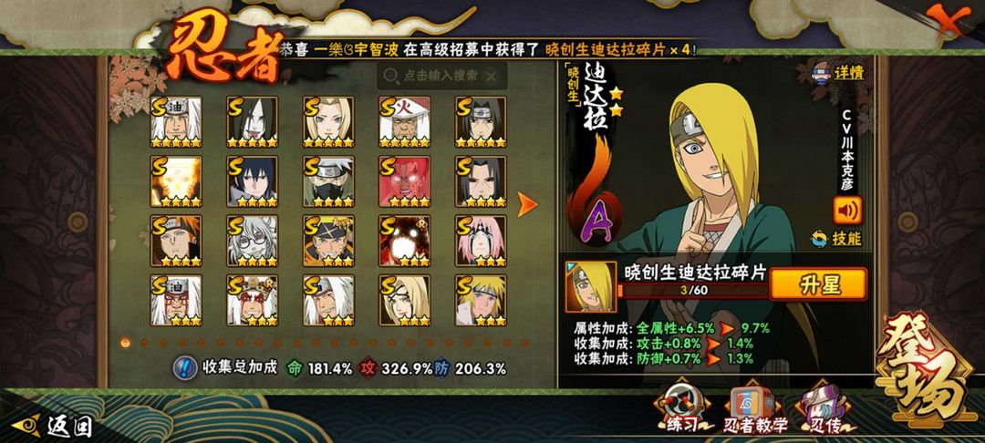 创生迪达拉已秒,3400战力,神驹斑体验卡,全s,十尾带土,神威对决卡卡西,黑绝。。超哥。。