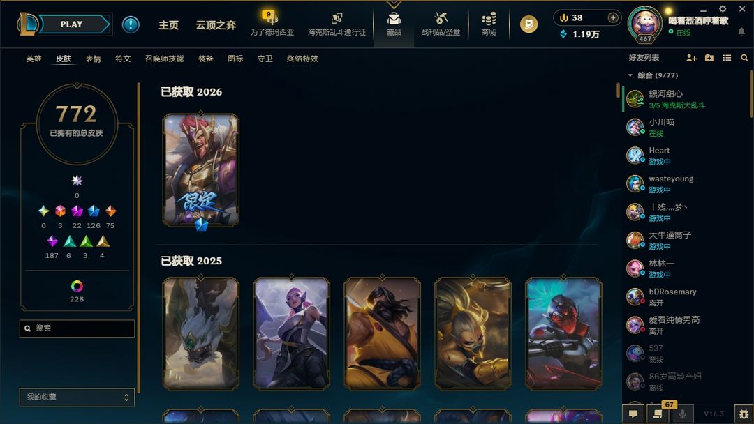 艾欧尼亚❤️772原皮❤️228炫彩❤️青花瓷❤️大元素使❤️武装战姬❤️未来战士