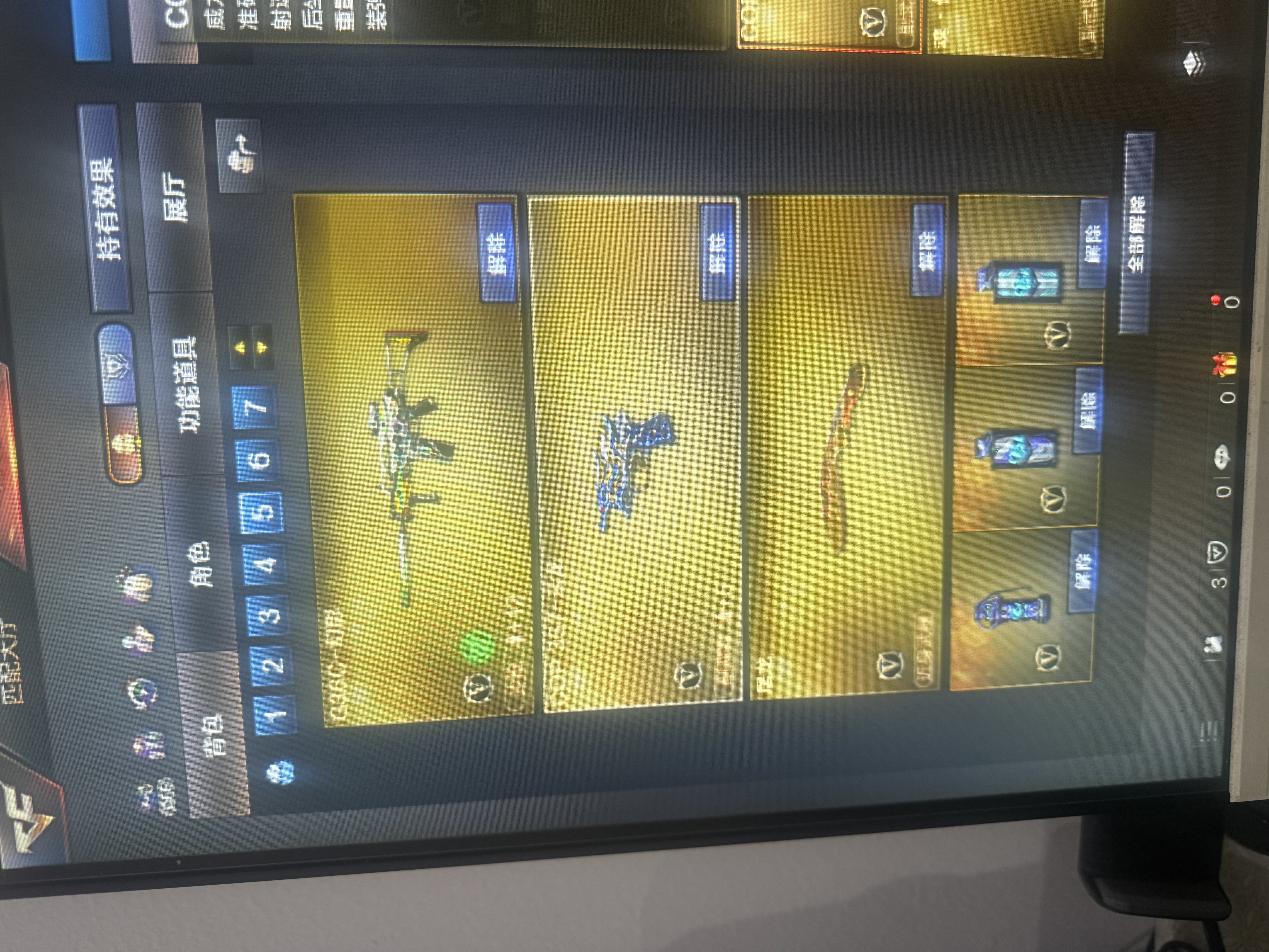 爆破号,排位号;炽芒蝶刃,电竞教官-云悠悠,RPK-盘龙,G36C-幻影,M200-幻神,Scar Light-白虎,Kar98K-星神,