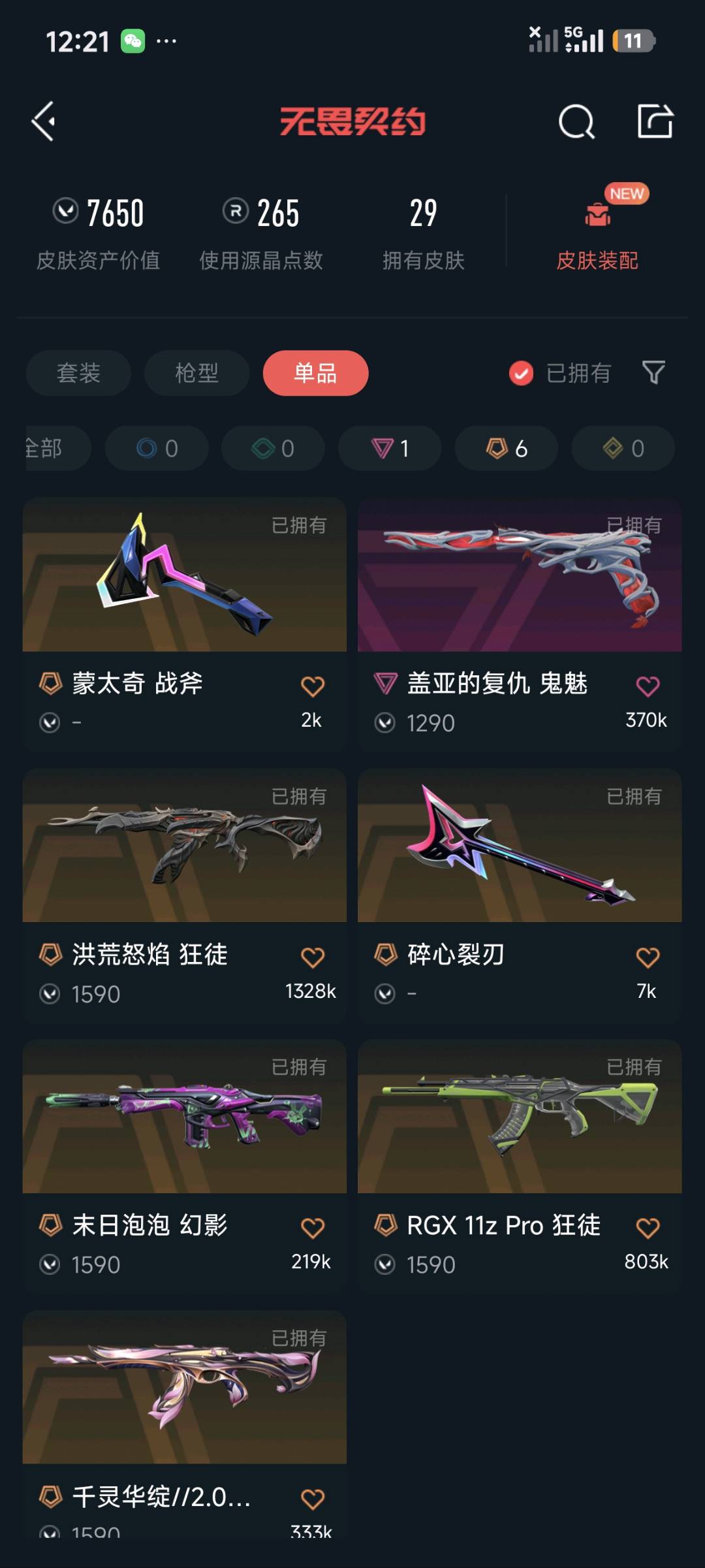 • 皮肤资产价值: 7650
