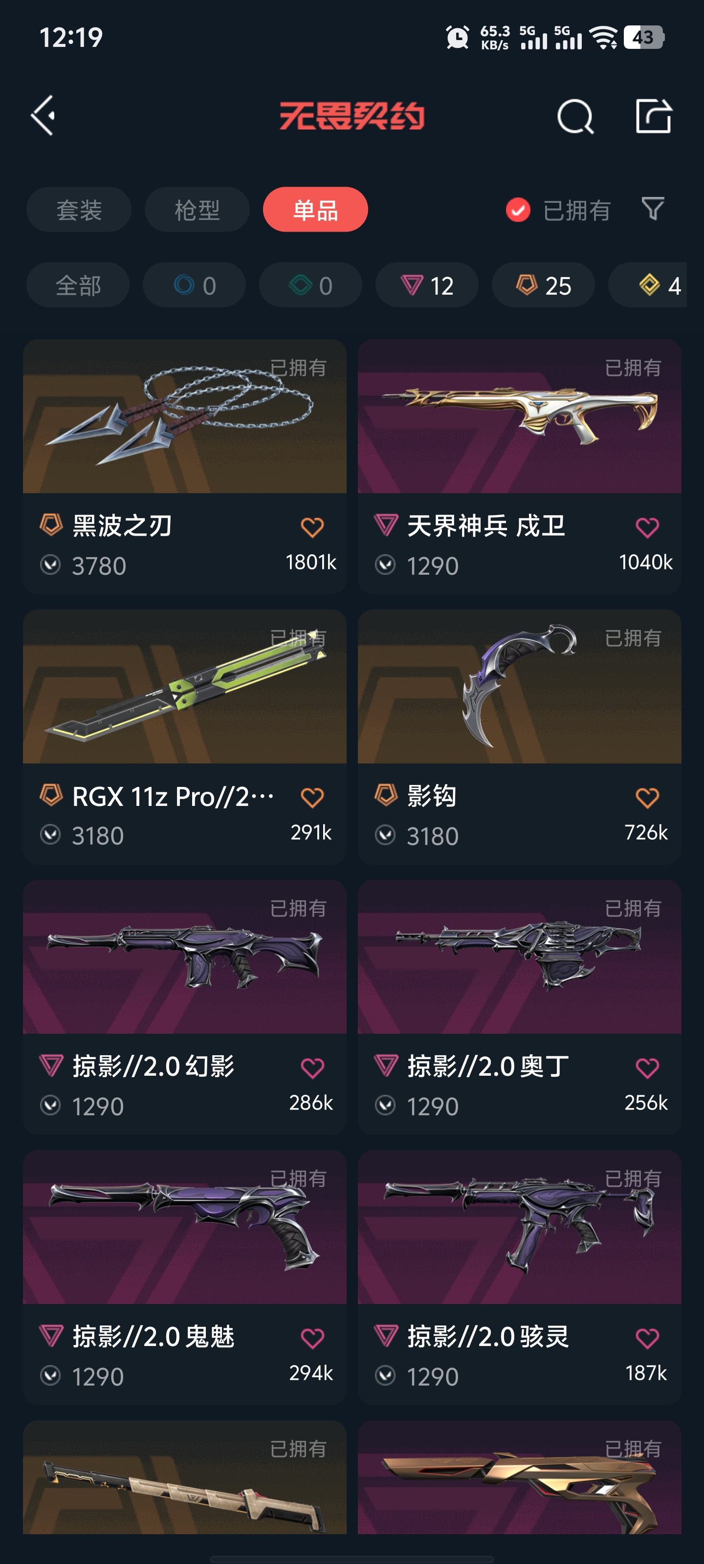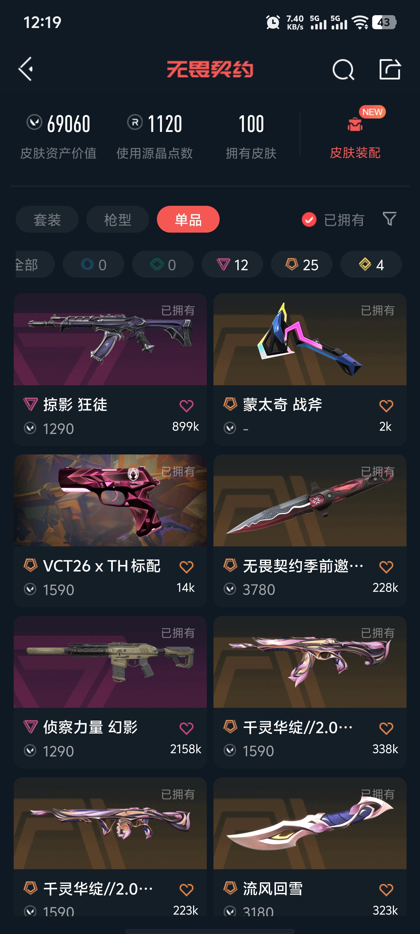 6.9w库存/怜悯之刃/影钩/黑波之刃/流风回雪/25冠军/颗秒套装/堕天遗物/观察力量/混沌AK