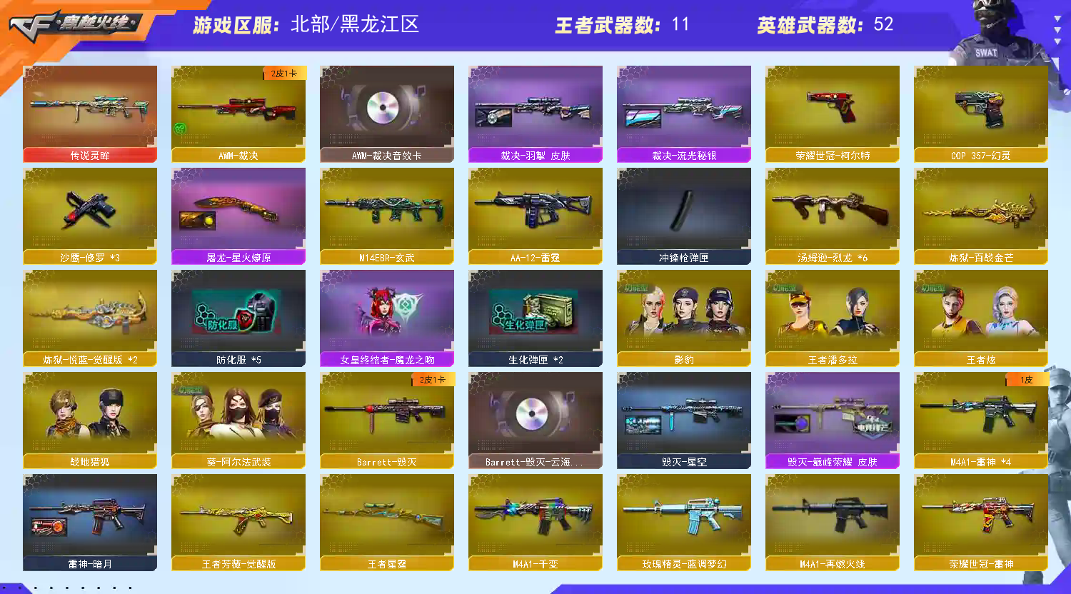 首页 > 租号大厅 > 穿越火线 > 网通区/黑龙江区 > 传说灵眸裁决三件套❤️毁灭5皮带王者98K王者QBZ❤️六烈COP幻灵 英雄柯尔特❤️影豹 战地猎狐