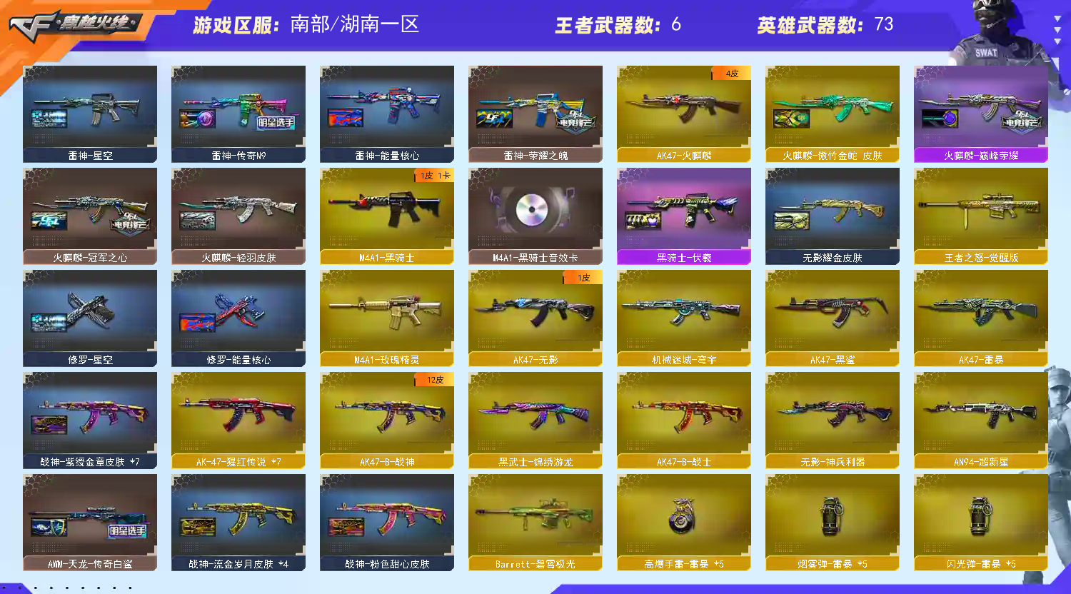 • 游戏区服:穿越火线 / 电信区 / 湖南一区