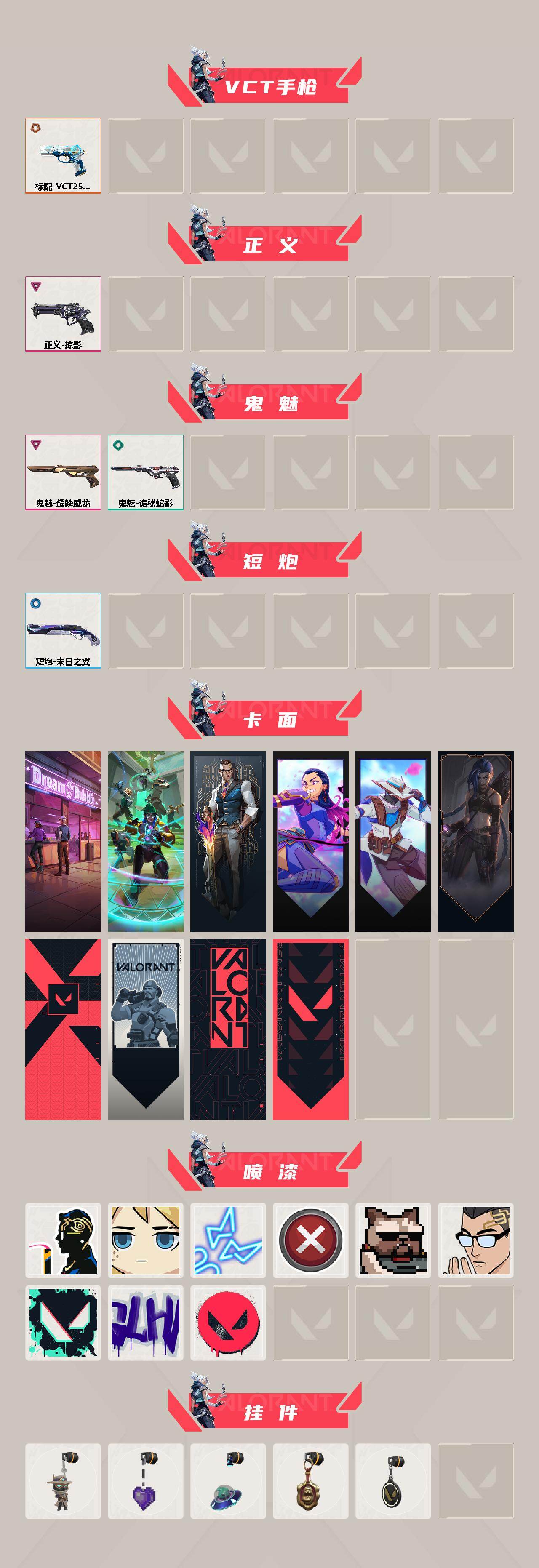 冻结三分钟内解除,短信通知重新上即可!喜欢收藏不迷路、游戏异常进小黑屋、时间不够请提前续租或者不要开局 【英雄】:幻棱,炼狱,维斯,暮蝶,钛狐,壹决,铁臂,捷风,雷兹,幽影,不死鸟,贤者,猎枭,蝰蛇,零,芮娜,奇乐,尚勃勒,霓虹,斯凯,夜露,星礈,K/O,海神,盖可,黑梦,钢锁 【近战武器】:近战武器-ORA x 颗秒 军刀,近战武器-镭切,近战武器-诡秘蛇影 军刀,近战武器-日耀风暴 遗器 【狂徒】:狂徒-归零者,狂徒-混沌序曲,狂徒-多弥尔的复仇,狂徒-诡秘蛇影 【幻影】:幻影-电音光谱,幻影-末日泡泡,幻影-ORA x 颗秒,幻影-天界神兵//2.0,幻影-末日之翼,幻影-电音光谱 【戍卫】:戍卫-折光棱晶 【冥驹】:冥驹-光荣异象 【飞将】:飞将-末日之翼 【莽侠】:莽侠-创·纪元,莽侠-诡秘蛇影 【奥丁】:奥丁-末日之翼 【判官】:判官-诡秘蛇影 【骇灵】:骇灵-无限竞技 【蜂刺】:蜂刺-折光棱晶 【标配】:标配-折光棱晶 【VCT手枪】:标配-VCT25 x LEV 【正义】:正义-掠影 【鬼魅】:鬼魅-耀鳞威龙,鬼魅-诡秘蛇影 【短炮】:短炮-末日之翼 【卡面】:梦幻奶茶 卡面,哨卫者之领域 卡面,无畏契约:尚勃勒 卡面,无畏契约GO!一卷:芮娜 卡面,无畏契约GO!一卷:零 卡面,《双城之战》金克丝 卡面,代号红色 卡面,新兵报到 卡面,V契约 卡面,无畏契约 卡面 【喷漆】:致命优雅 喷漆,当然可以 喷漆,霓光四射 喷漆,买装还是存钱 喷漆,关门放狗 喷漆,真相只有一个 喷漆,胜利属于无畏契约 喷漆,GLHF 喷漆,无畏契约 喷漆 【挂饰】:无畏契约GO!一卷 零 挂饰,薰衣草之心 挂饰,天外飞客 挂饰,海豹的认可 挂饰,无畏契约 纪念币 挂饰;镭切,天界神兵//2.0 幻影,混沌序曲 狂徒,掠影 正义,