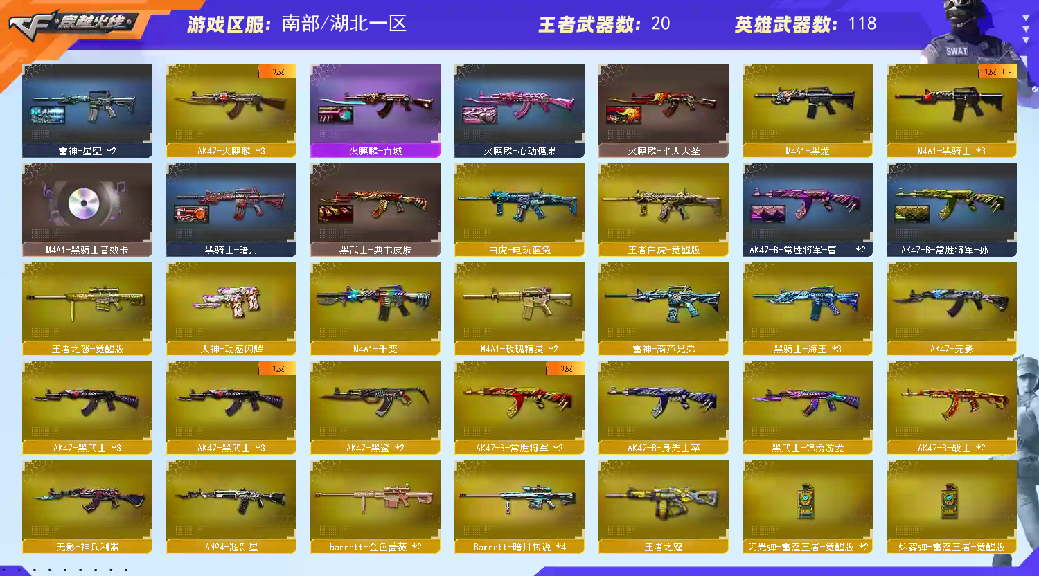 • 游戏区服:穿越火线 / 电信区 / 湖北一区