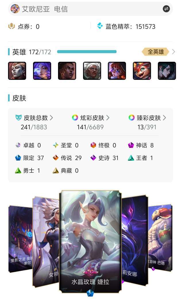 立即租号首页 > 租号大厅 > 英雄联盟 > 艾欧尼亚/艾欧尼亚 > 艾欧尼亚⭐全英雄400皮⭐至臻限定传说⭐可带妹⭐高质量极致体验