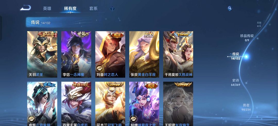 【非云直上】V10★皮肤榜一★539皮满典藏★鲁班时之奇旅会员★虞姬黛羽霜翎星元★吕布白金战神★全能大师★多金标★个性按键