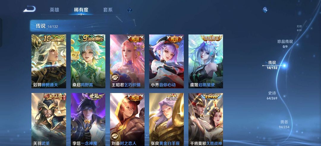 v10、12典藏520皮、马超无双飞将、韩信典藏、马可深海之熄、瑶珍品传说大耳狗之梦、青丘·九尾、枫霜尽、绯月行、前尘镜、至尊宝、天魔缭乱
