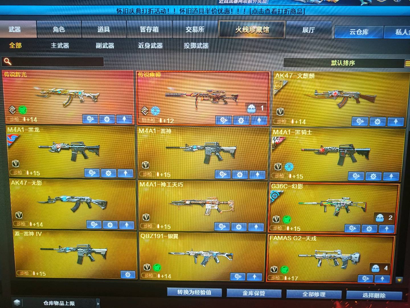 首页 > 租号大厅 > 穿越火线 > 网通区/河南一区 > V48把,传说幽童,AWM裁决+音效,传说辉光,千袭,天荣,王者雷暴套装 USB珊瑚G36c幻影
