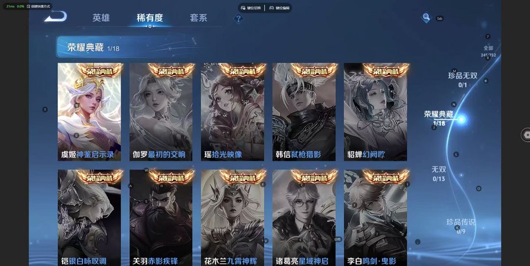 【天花板V10】535满皮满典藏/大乔时之奇旅新皮/虞姬星元/白金战甲/个性按键★多星元部件