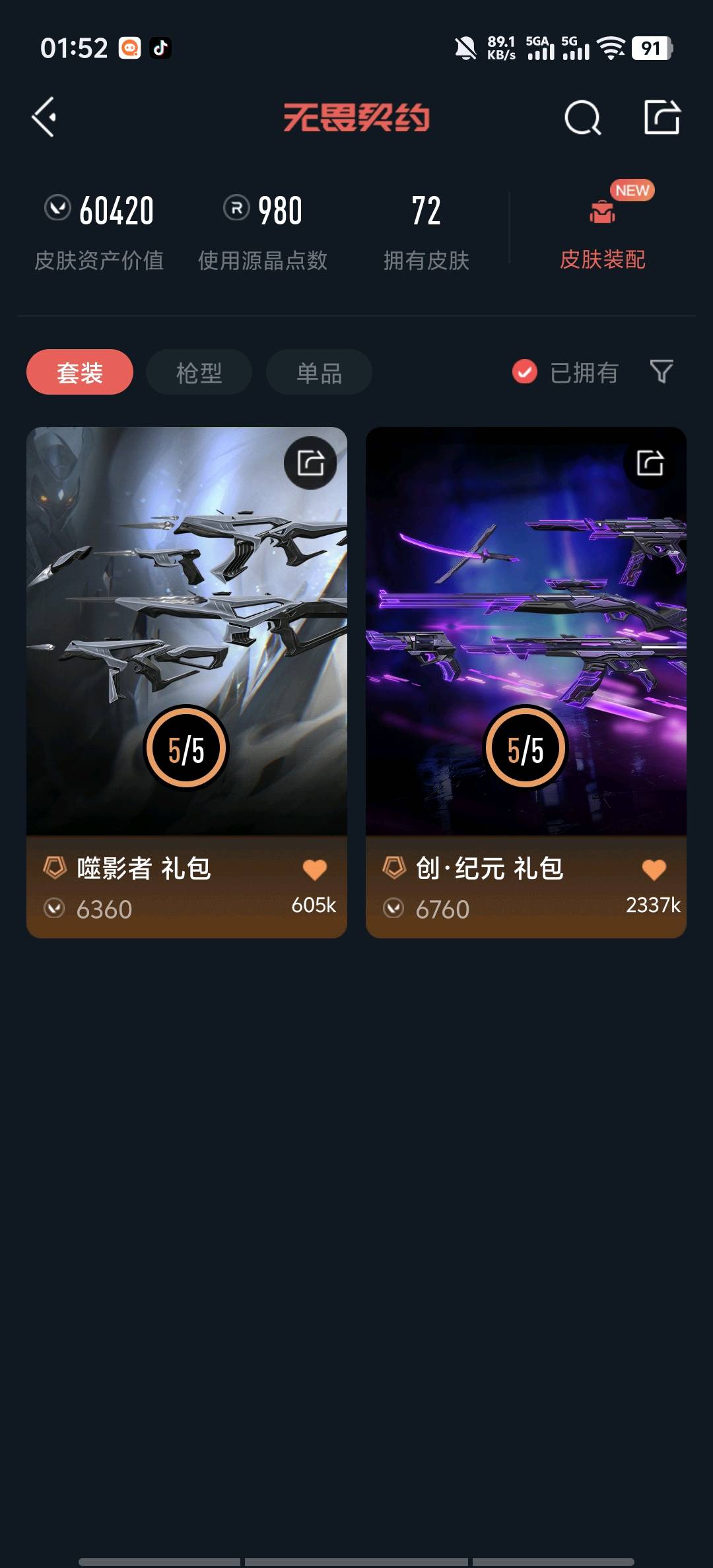 • 皮肤资产价值: 60420
