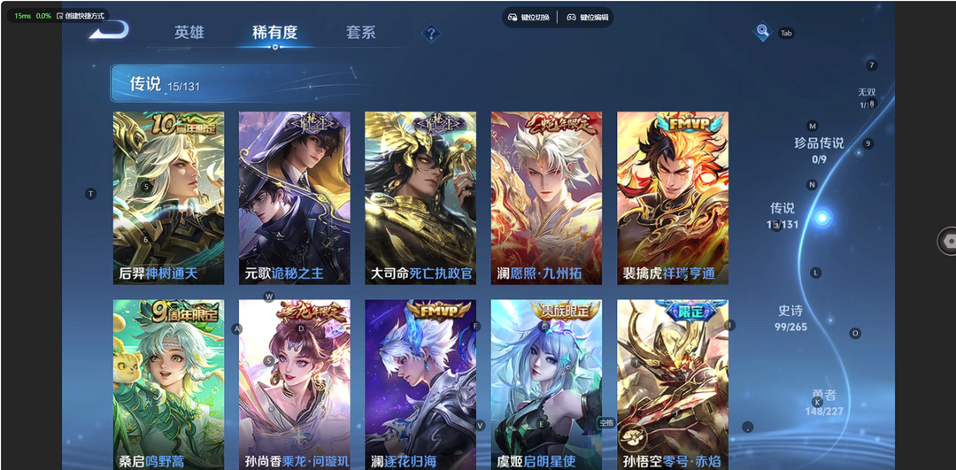 【天花板V10】535满皮满典藏/大乔时之奇旅新皮/虞姬星元/白金战甲/个性按键★多星元部件