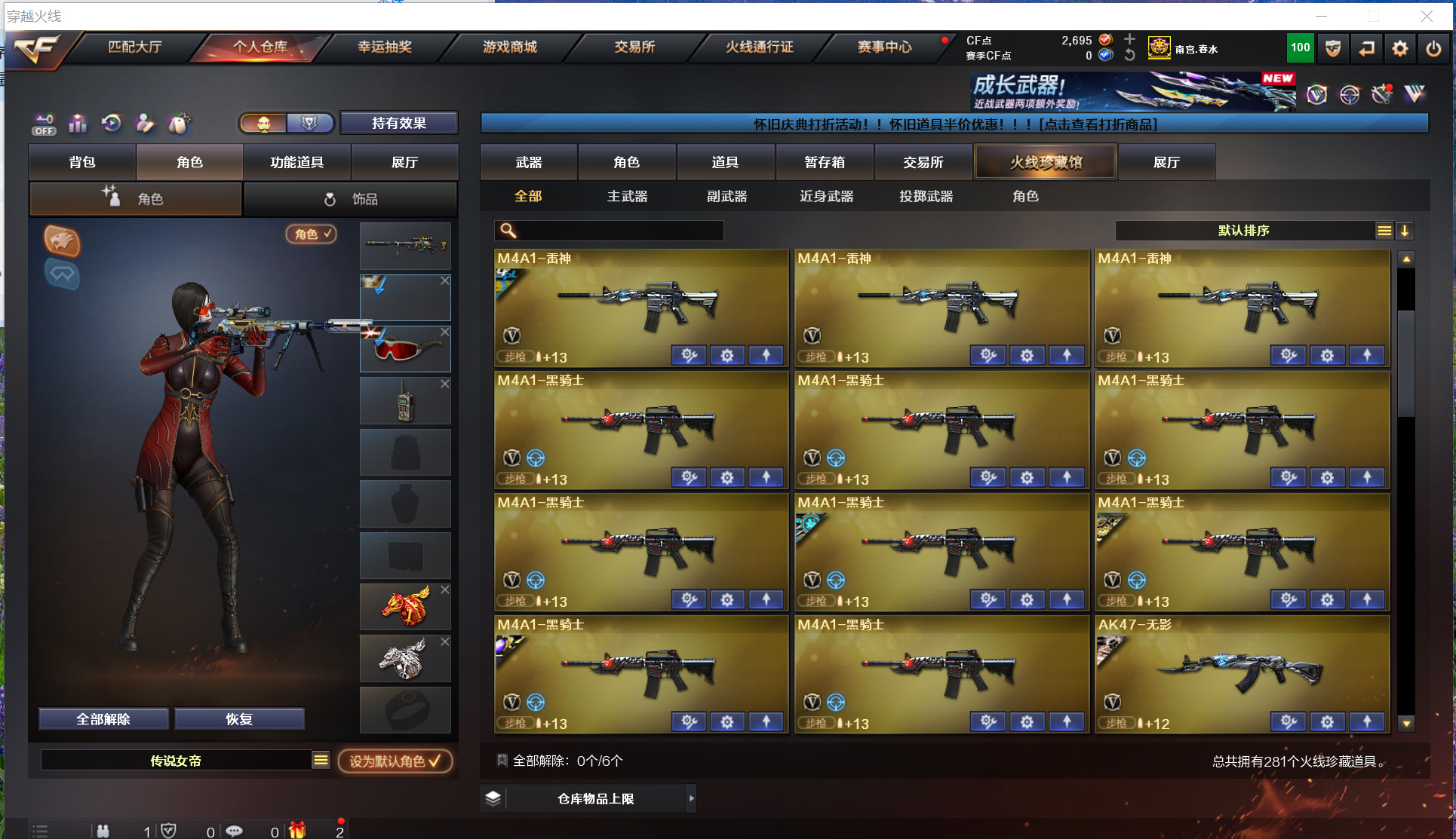 传说女帝序列号光耀7339幻神星神裁决音效卡周瑜蝴蝶6烈6炼狱双雷暴雷霆王者堕天神冠军特竞技套;USP-雷暴,柯尔特-冠军之特,传说女帝,电竞教官-云悠悠,RPK-盘龙,QBZ03-金色蔷薇,M200-幻神,