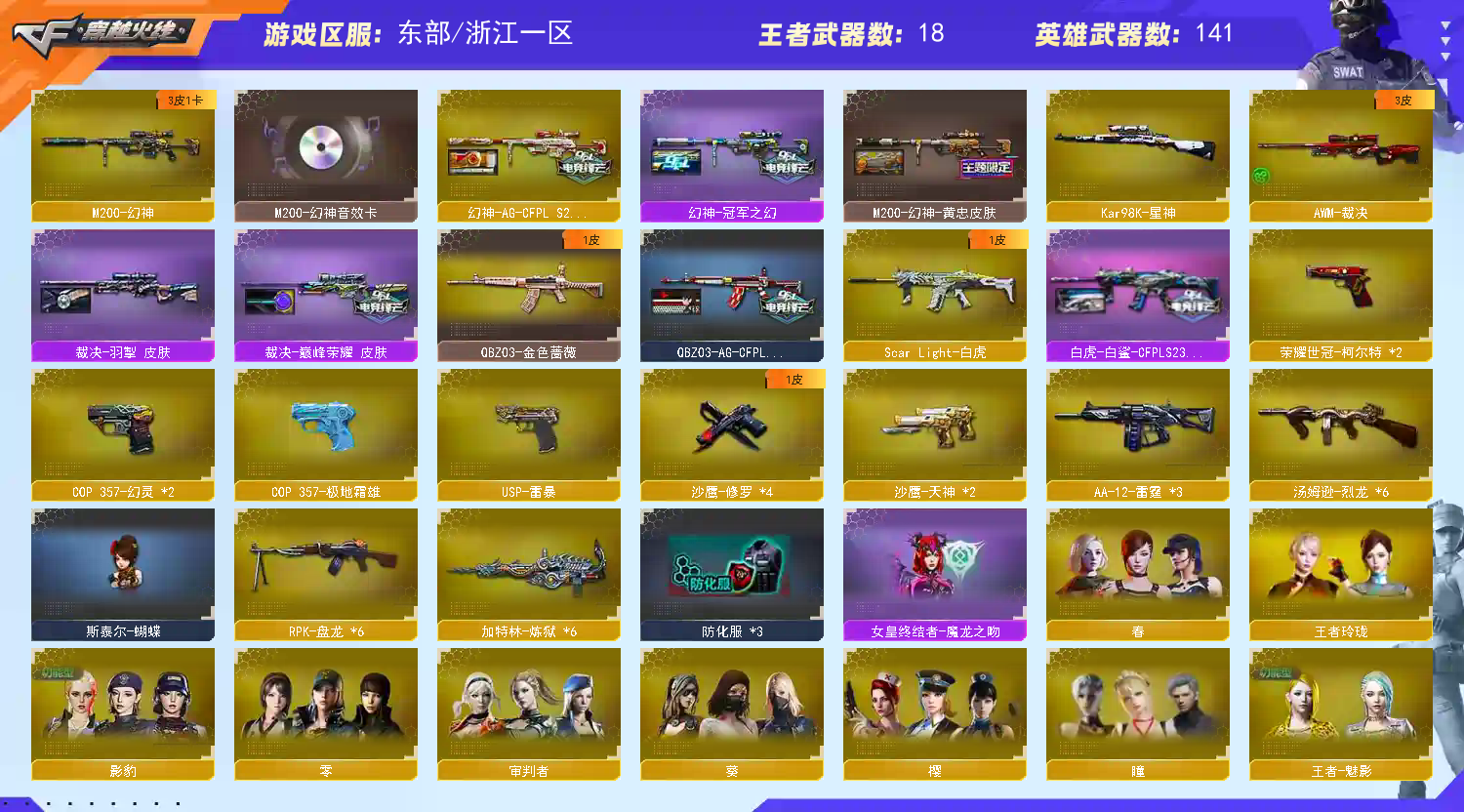 【东部幻神三件套/六盘/六列/六炼狱】【m200幻神+AGCFpls24冠军皮肤+冠军之幻皮肤+黄忠皮肤+幻神音效卡】【98k星神】【裁决+巅峰荣耀皮肤】【白虎+白鲨CFpls23冠军皮肤】【qbz金色蔷薇+AGCFpls19冠军皮肤】【觉醒王者之心/王者之影/m4雷霆王者/王者之幻/觉醒王者之魄/觉醒王者之势/觉醒王者之光/觉醒王者之锋】【雷暴套装】【幻灵套装】【usp雷暴/cop幻灵/荣耀世冠柯尔特/cop极地霜雄】【宙斯权杖/斯泰尔蝴蝶/牛牛AK47/C.A.T/火麒麟灵狐】【千变/火麒麟/黑龙/雷神x4/黑骑士/无影/死神x2/黑武士/天启/超新星/武圣/机械迷城/黑鲨/龙血/HK朱雀/机械迷城穹宇/m4玫瑰精灵/m4猎神/91烈火/AK猩红传说/AK战士/AK战神/黑骑士海王/荣耀世冠雷神/AK身先士卒/AK常胜将军/天龙/毁灭/极光/巴雷特朱雀x2/巴雷特金色蔷薇/巴雷特暗月传说/AA12雷霆x3】【修罗x4/天神x2/Glock武圣/usp雷暴/cop幻灵x2/荣耀世冠柯尔特x2】【屠龙x4/龙啸x3/擎天/麒麟刺x4/尼泊尔雷霆/斩神刀雷暴/幻灵之锋x2】【雷暴手雷包一套】【幻灵手雷包/雷霆王者手雷包】【王者瞳-闭月羞花/王者玲珑/王者-魅影/王者之瞳/审判者/影豹/瞳/樱/零/葵/春】【零纪元/战地猎狐/初恋灵狐/虎妞/空/灵狐者黄金海岸/灵狐者七夕宝贝/灵狐者职业经理/潘多拉甜心教官/斯沃特锋芒精英/新灵狐者/职业选手/紫霞】【暗夜-x/奥摩-x/北极狐-x/灵狐者-x/兰-新年限定/曼陀罗-x/潘多拉-n//潘多拉-x/圣诞潘多拉-x/夜玫瑰-x】【EDG炫彩背包/ep战队炫彩背包/Q9战队炫彩背包/R.LGD炫彩背包/超级背包/虎牙炫彩背包/亚洲杯纪念炫彩背包/炫彩背包】【m200幻神音效卡】【雷神音效卡/黑骑士音效卡/毁灭音效卡/极光音效卡/火麒麟音效卡】【幻神AGCFpls24冠军皮肤/幻神冠军之幻皮肤/幻神黄忠皮肤】【白虎-白鲨CFpls23冠军皮肤】【裁决巅峰荣耀皮肤/裁决羽挚皮肤】【qbz-AGCFpls19冠军皮肤】【雷神冠军之魄皮肤/雷神荣耀之魄皮肤/雷神宠儿皮肤/雷神诺拉皮肤/雷神cfs2019皮肤/雷神虎将皮肤】【毁灭荣耀之怒皮肤/毁灭神秘黑洞皮肤/毁灭cfs2018皮肤/毁灭AGCFpls15冠军皮肤/毁灭BEAN-2020MVP皮肤/毁灭青帝皮肤/毁灭耀金皮肤/毁灭cfs2020皮肤】【AC/手雷包/c4钳永久】玩偶光效一堆;USP-雷暴,荣耀世冠-柯尔特,RPK-盘龙,QBZ03-金色蔷薇,M200-幻神,Scar Light-白虎,Kar98K-星神,