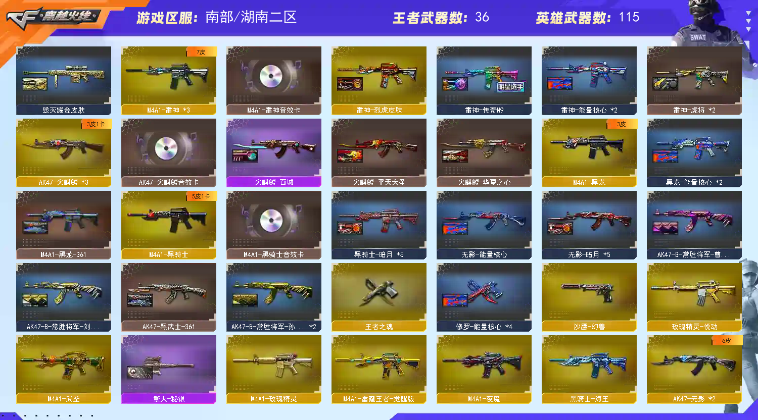 • 游戏区服:穿越火线 / 电信区 / 湖南二区