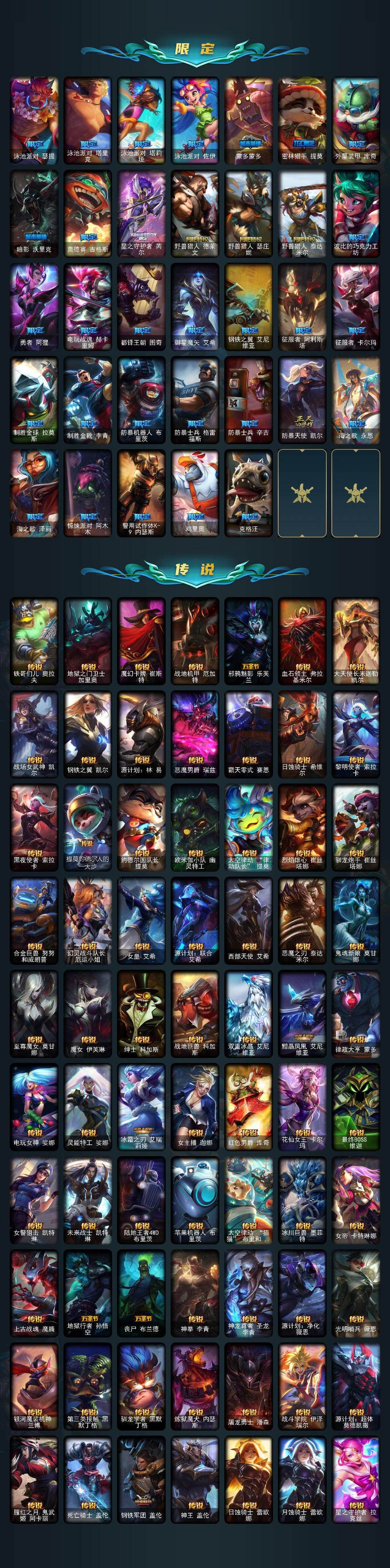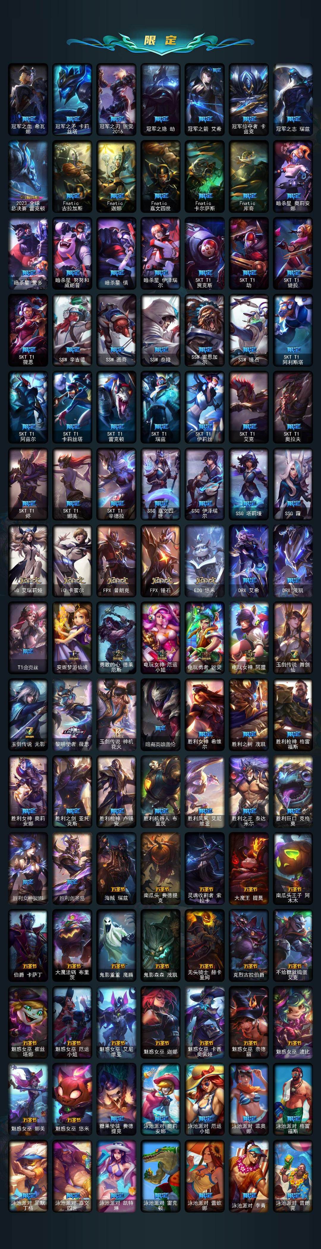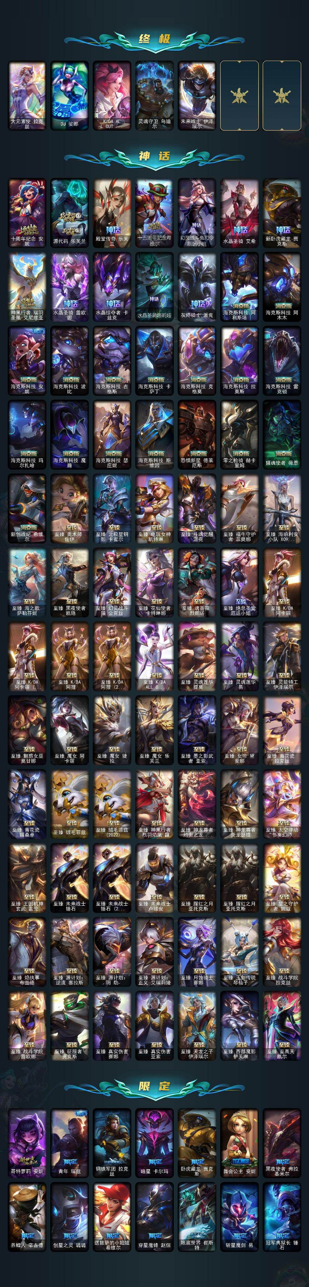 1195皮肤-839炫彩-7终极-88神话-222限定-100传说-213史诗-殿堂传奇阿狸-龙瞎
