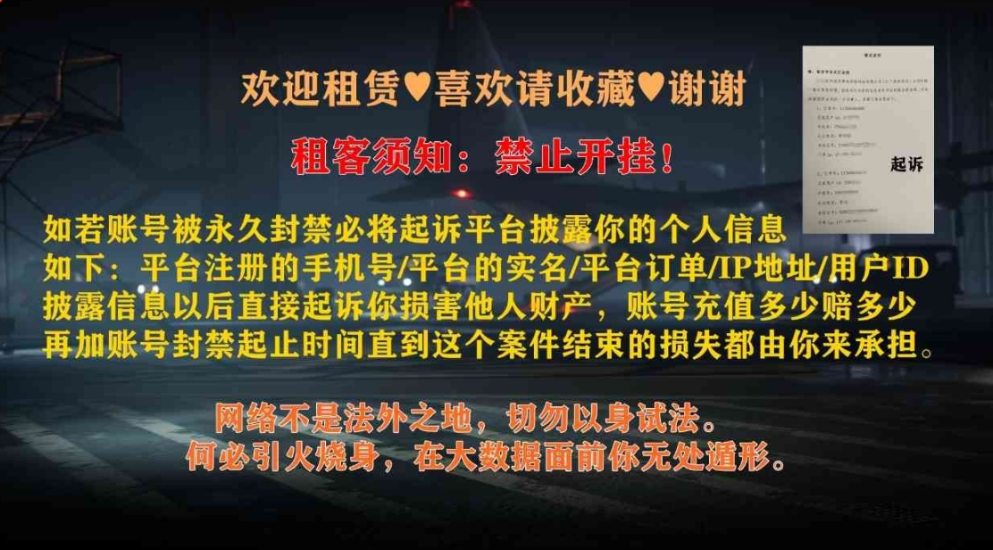 • 温馨提示:禁止使用外挂否则将扣除全部租金和押金,该信息由网络用户发布并对内容负责,GG租号仅是信息发布平台