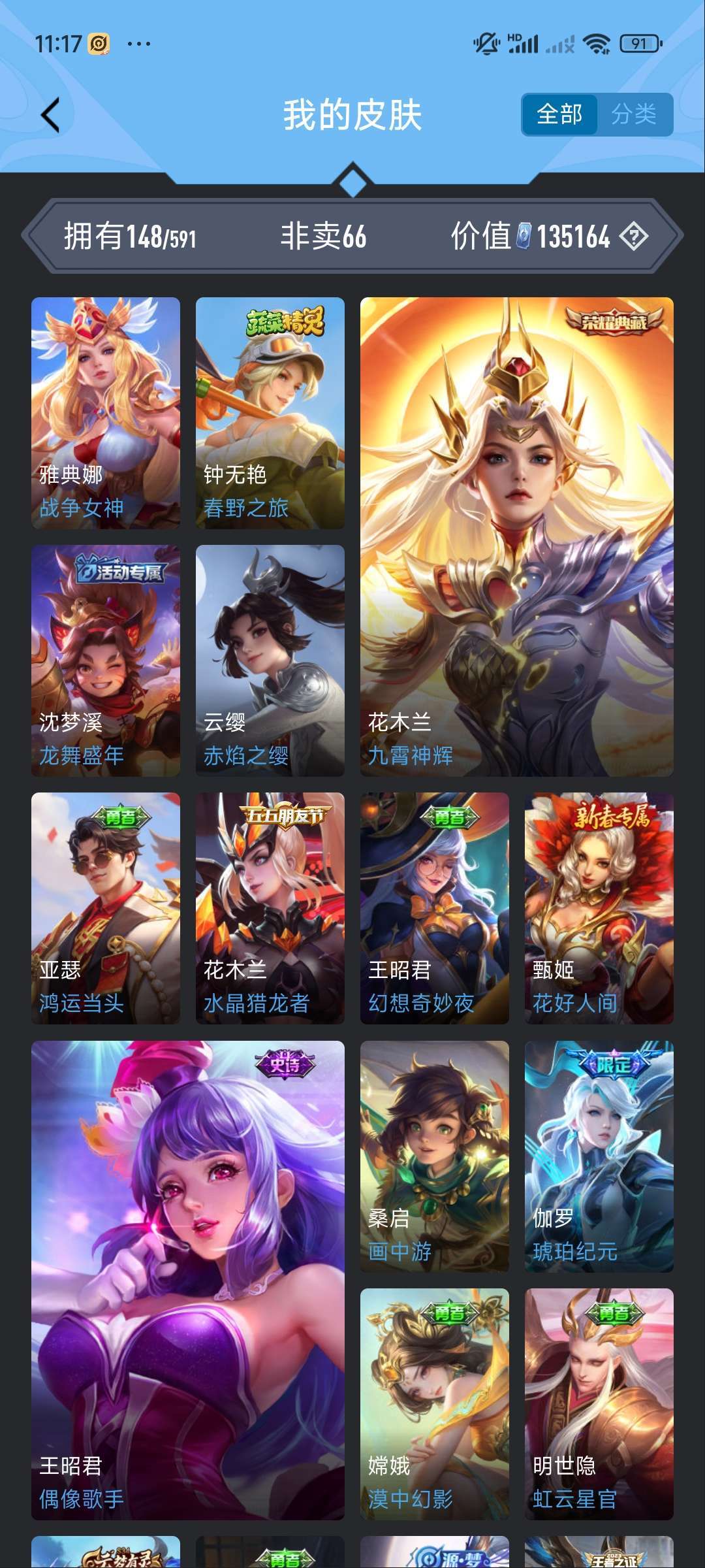 立即租号首页 > 租号大厅 > 王者荣耀 > 标题写明区服/QQ > 【典藏:1 147皮】:花木兰 九霄神辉曜 无双限定 无双飞将 李逍遥 韩信无双