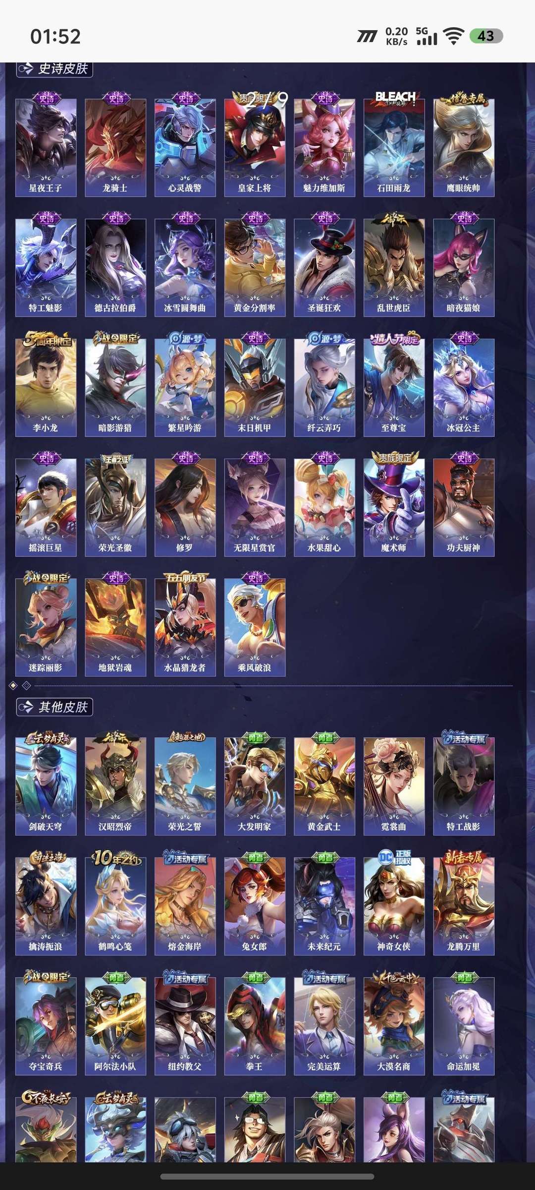 【非沄直接上号】极品V10★三历史国标★430皮★六典藏★诸葛亮新典藏★虎年五限定★鸣剑戈影★活力突击️★多限定