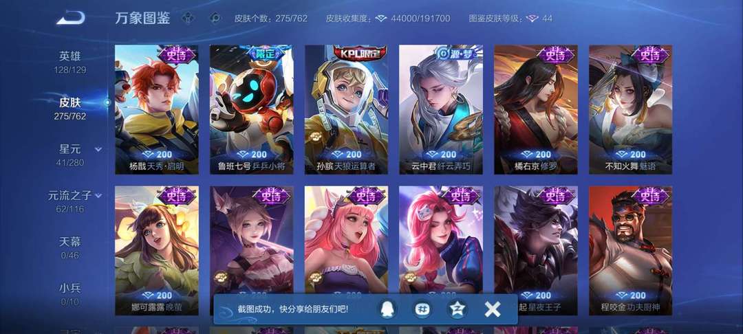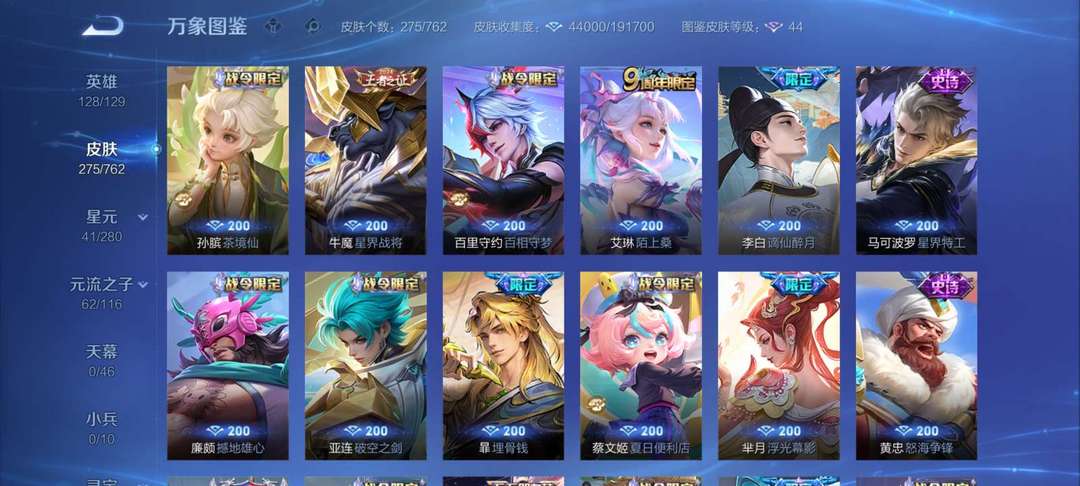 V10、543皮14水、吕布典藏-千魇归渊、愿照·九州拓、愿照·众生和、怪盗基德、伽罗星传说红枫、瑶典藏拾光映像、冥王哈迪斯、、龙年限定、齐天大圣