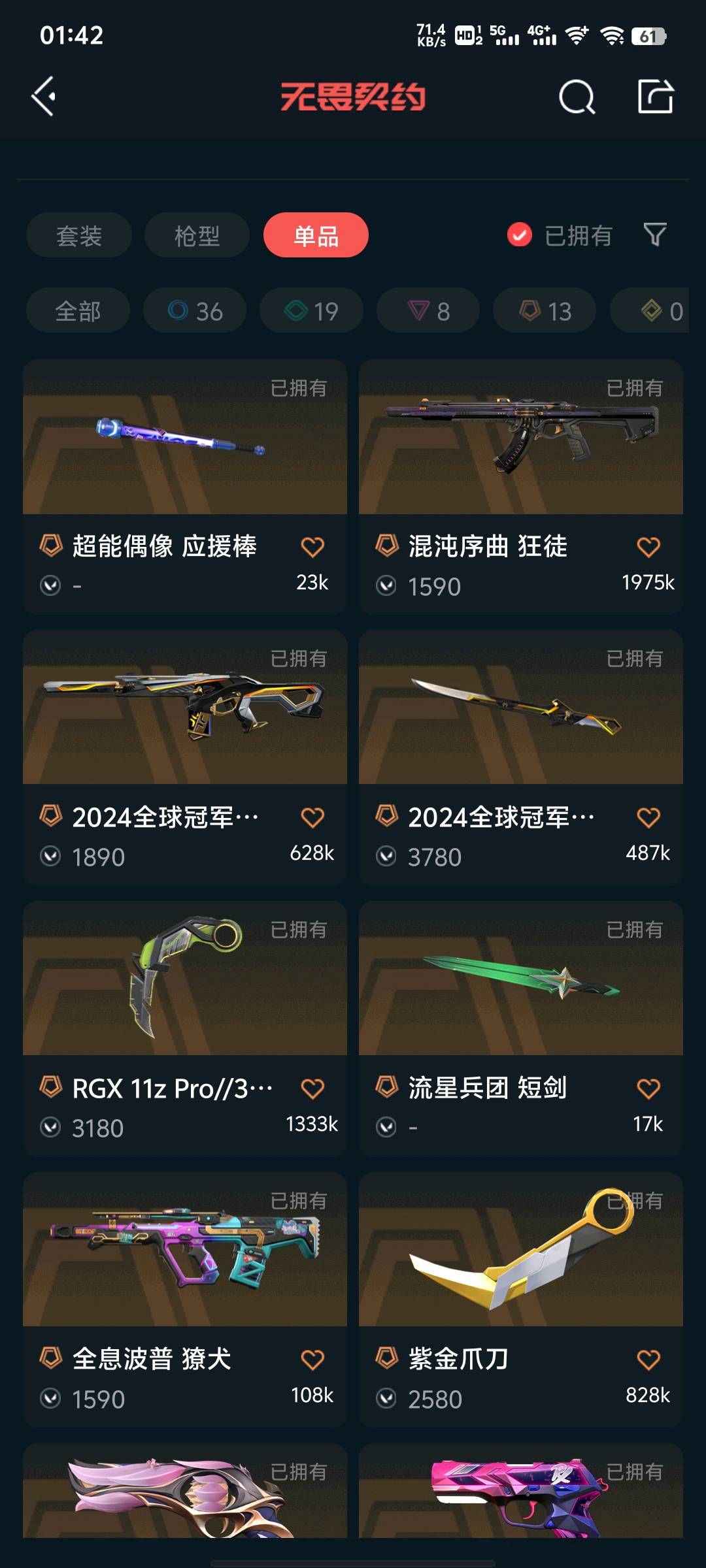 24冠军套/盖亚/堕天/混沌/紫金狂徒/堕天大狙/PRX标配/紫金爪刀/显卡3.0刀;