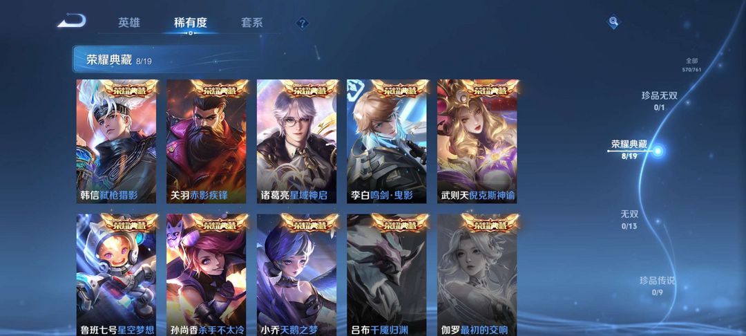【非云直上】V10★皮肤榜一★539皮满典藏★鲁班时之奇旅会员★虞姬黛羽霜翎星元★吕布白金战神★全能大师★多金标★个性按键
