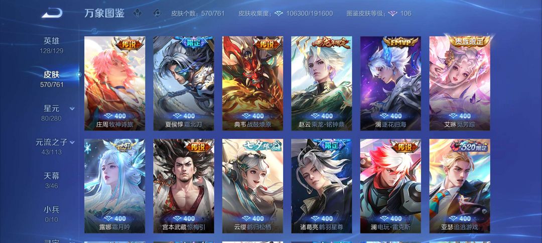 【非云直上】537满皮满典藏12星元◎鲁班新皮◎虞姬星元◎天使星元◎白金战神◎妲己绝版星元