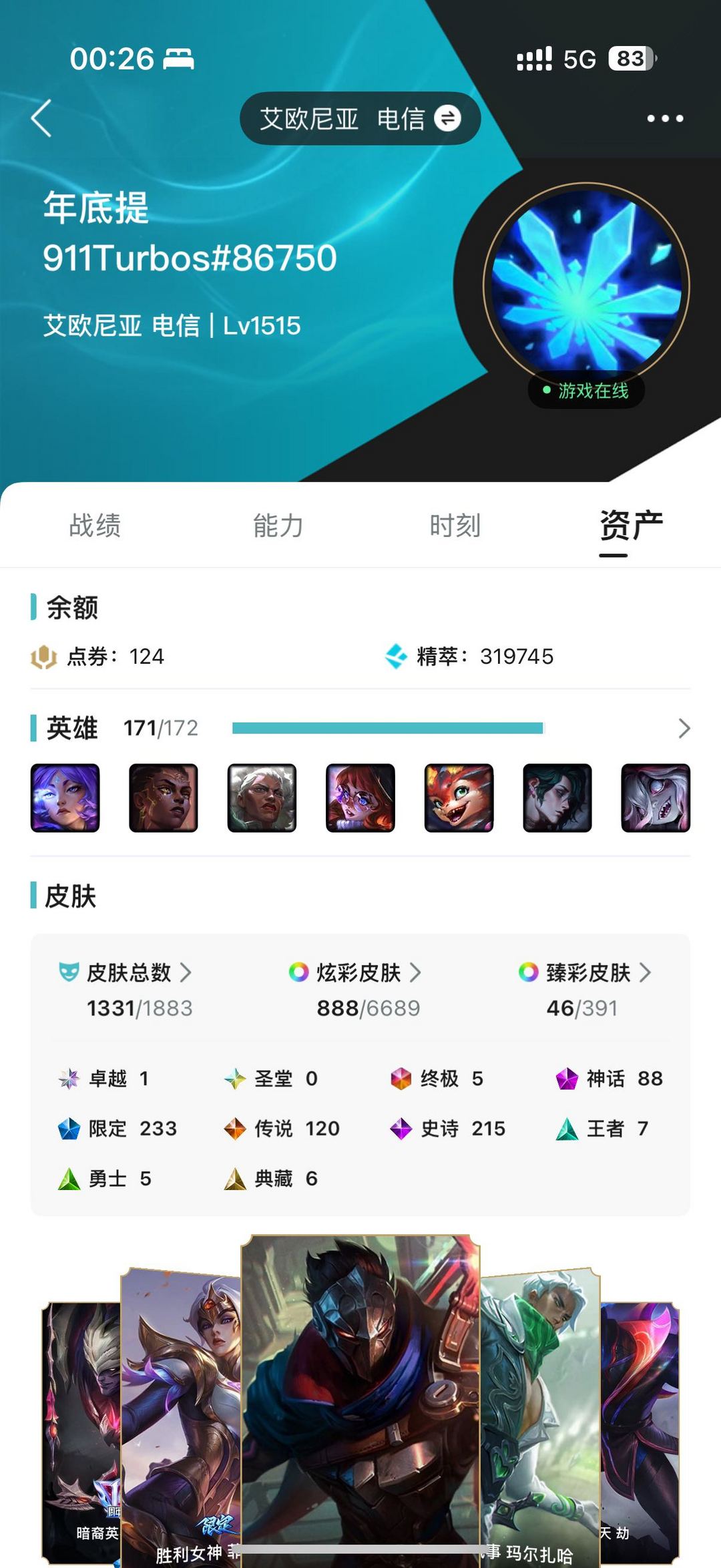 1368原皮⭐88神话⭐120传说⭐️可排位⭐️圣洁神王⭐圣天龙⭐️黑金龙虾⭐️殿堂传奇阿狸⭐️