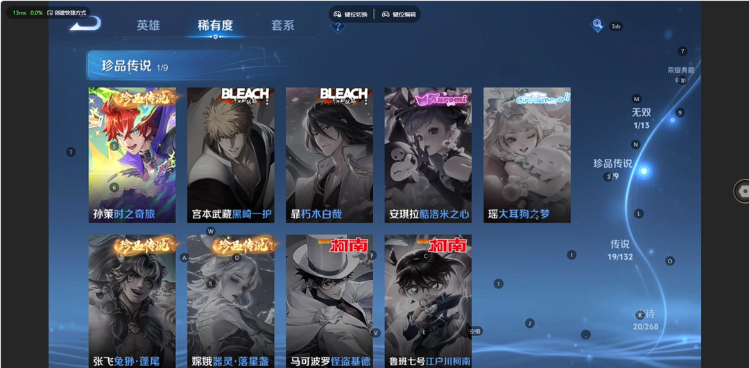 v10、524皮5水4无双、遇见神鼓、齐天大圣、白虎志、韩信荣耀典藏、72传说、愿照·九州拓、时之魔女、瑶无双、青丘、九尾、神器明辉仪