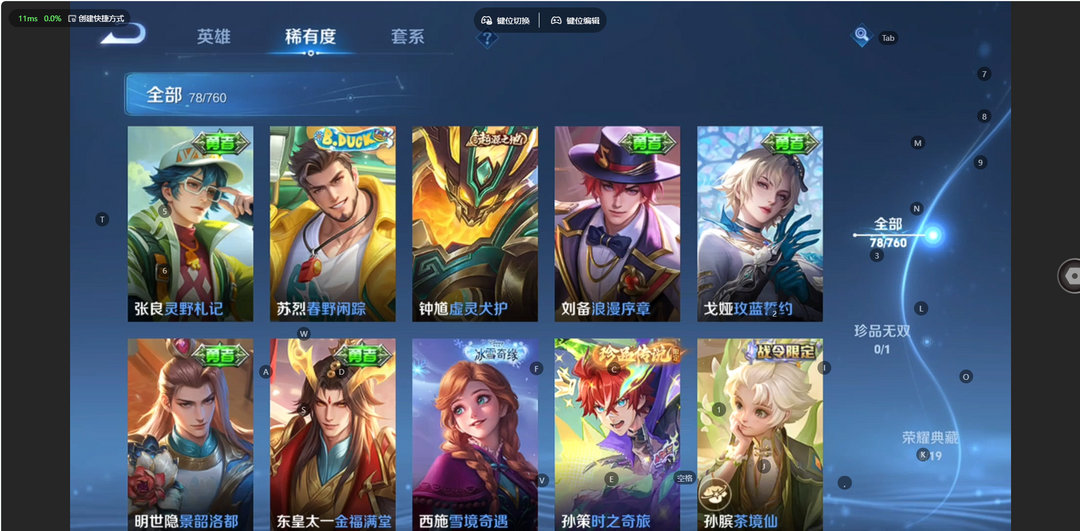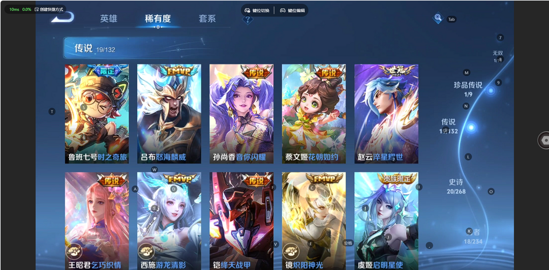 【非云直上】V10★皮肤榜一★539皮满典藏★鲁班时之奇旅会员★虞姬黛羽霜翎星元★吕布白金战神★全能大师★多金标★个性按键