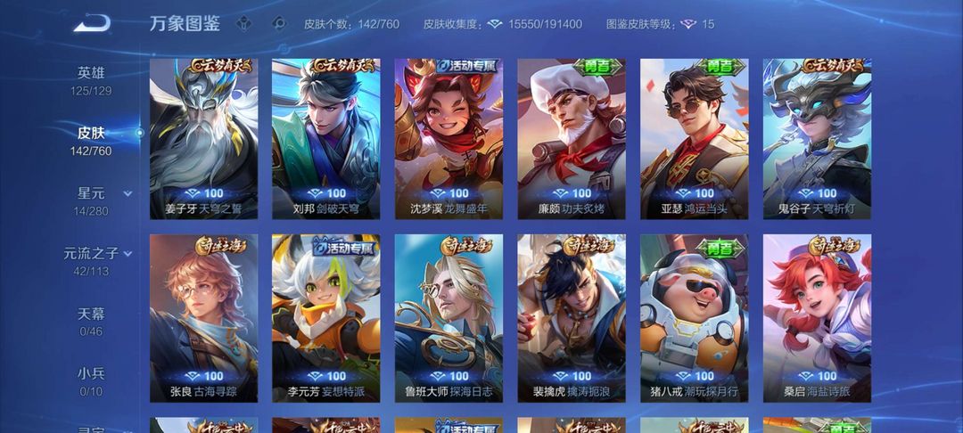 【非云直上】537满皮满典藏12星元◎鲁班新皮◎虞姬星元◎天使星元◎白金战神◎妲己绝版星元
