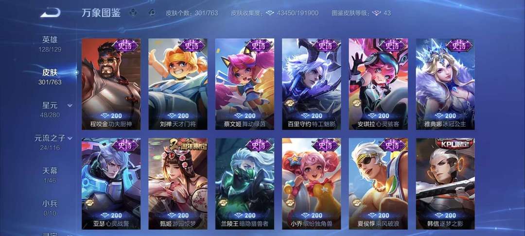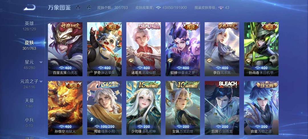 v10、524皮5水4无双、遇见神鼓、齐天大圣、白虎志、韩信荣耀典藏、72传说、愿照·九州拓、时之魔女、瑶无双、青丘、九尾、神器明辉仪