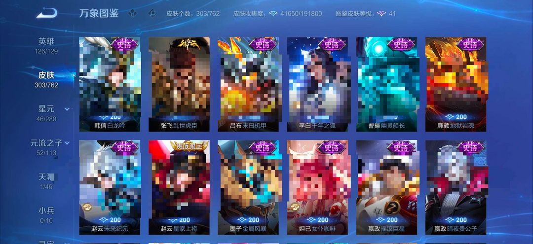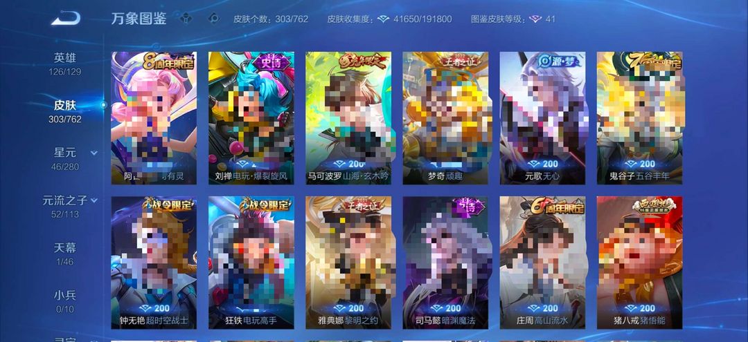 【非云直上】537满皮满典藏12星元◎鲁班新皮◎虞姬星元◎天使星元◎白金战神◎妲己绝版星元